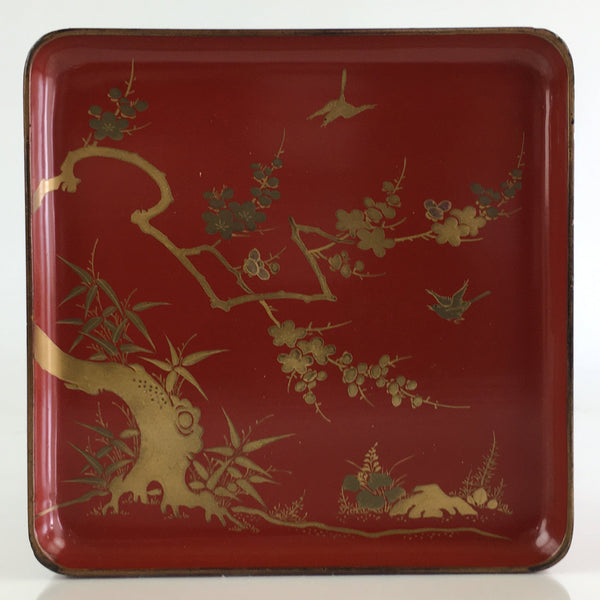 Japanese Wooden Legged Tray Lacquered Table Vtg Ozen Maki-e Red UR803
