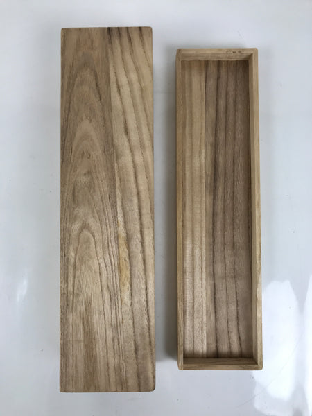 Japanese Wooden Lidded Pottery Storage Box Inside 38x8.5x7cm Brown X186