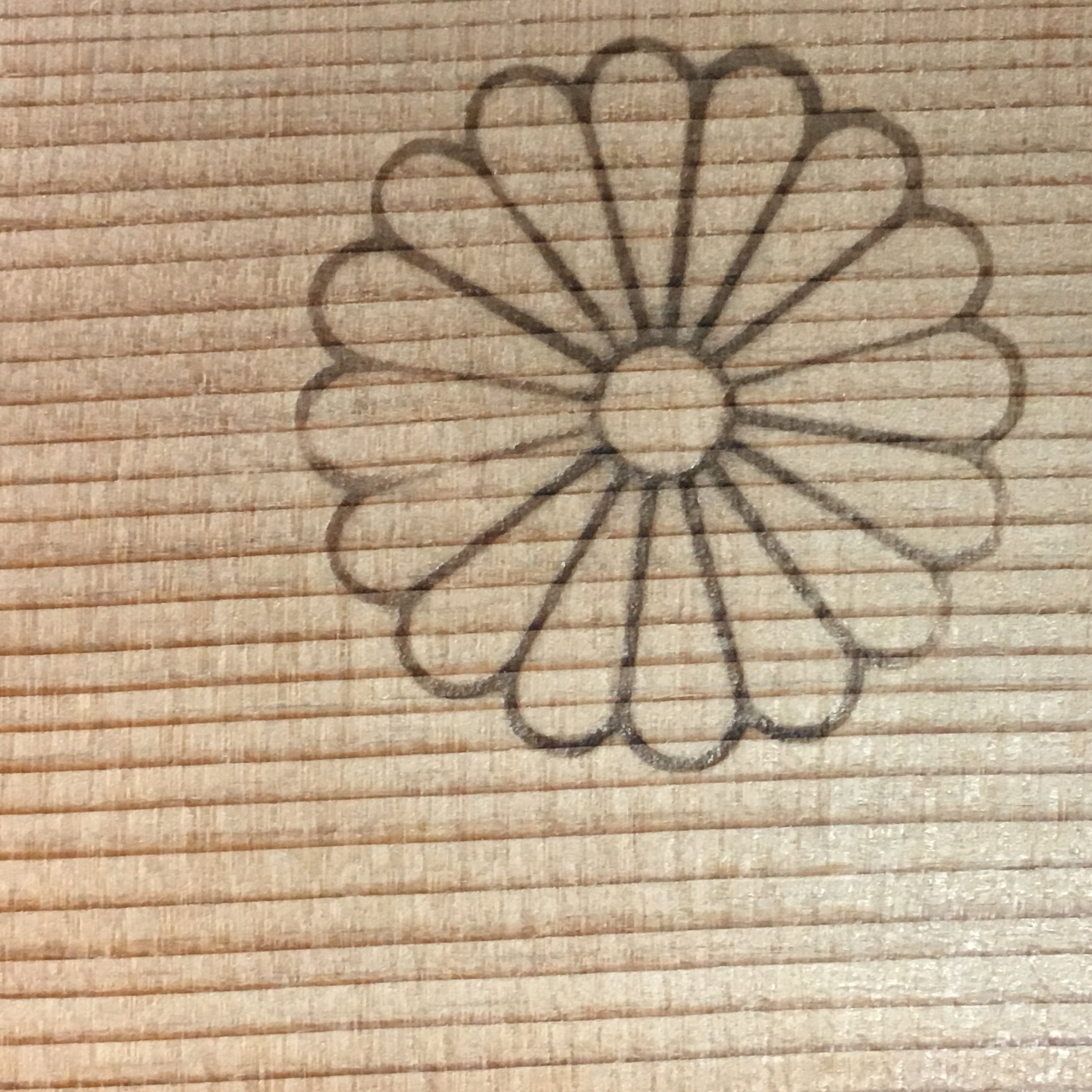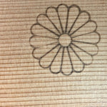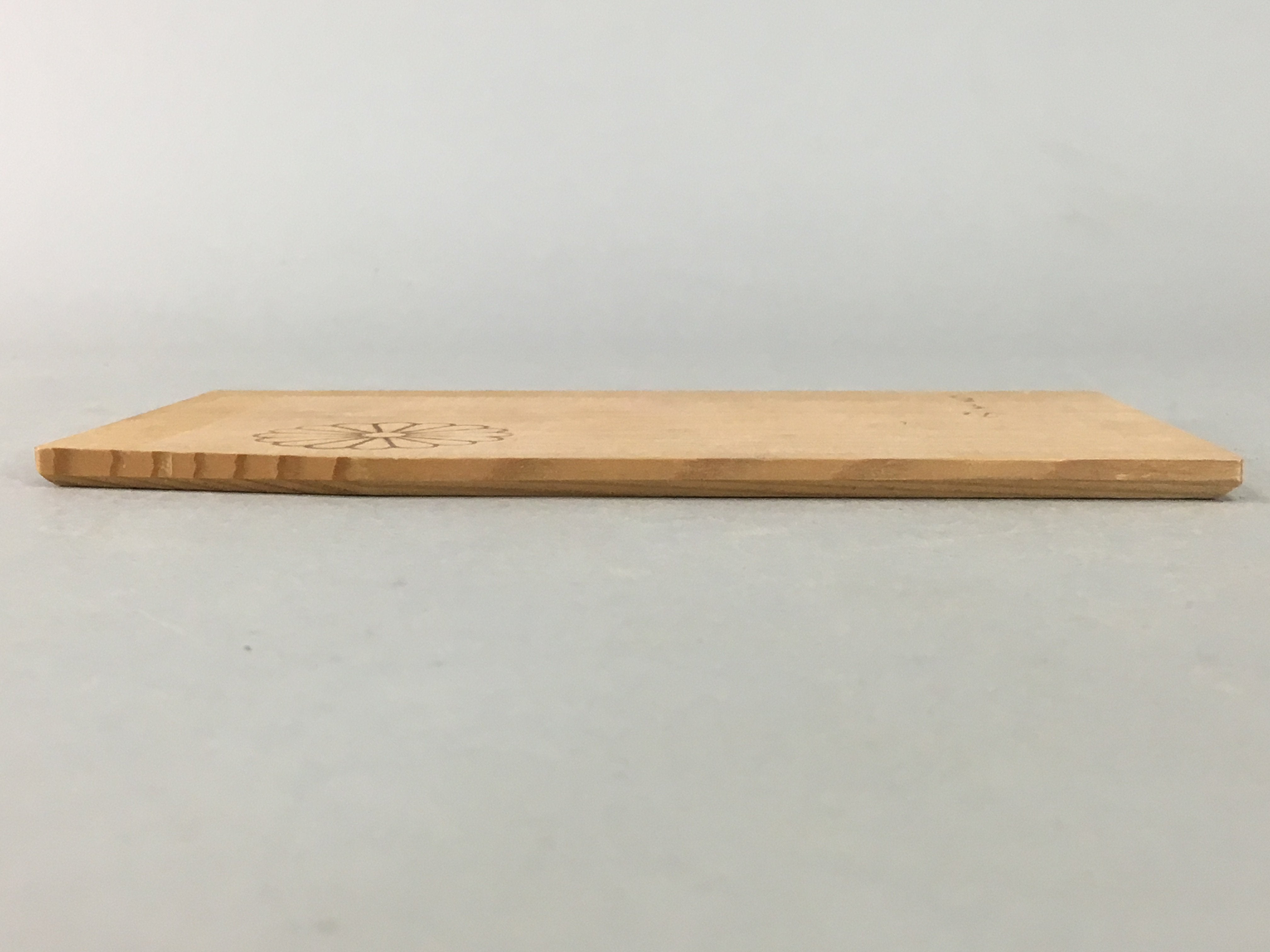 Japanese Wooden Plate Vtg Straight Grain Temple Chrysanthemum Crest UR227