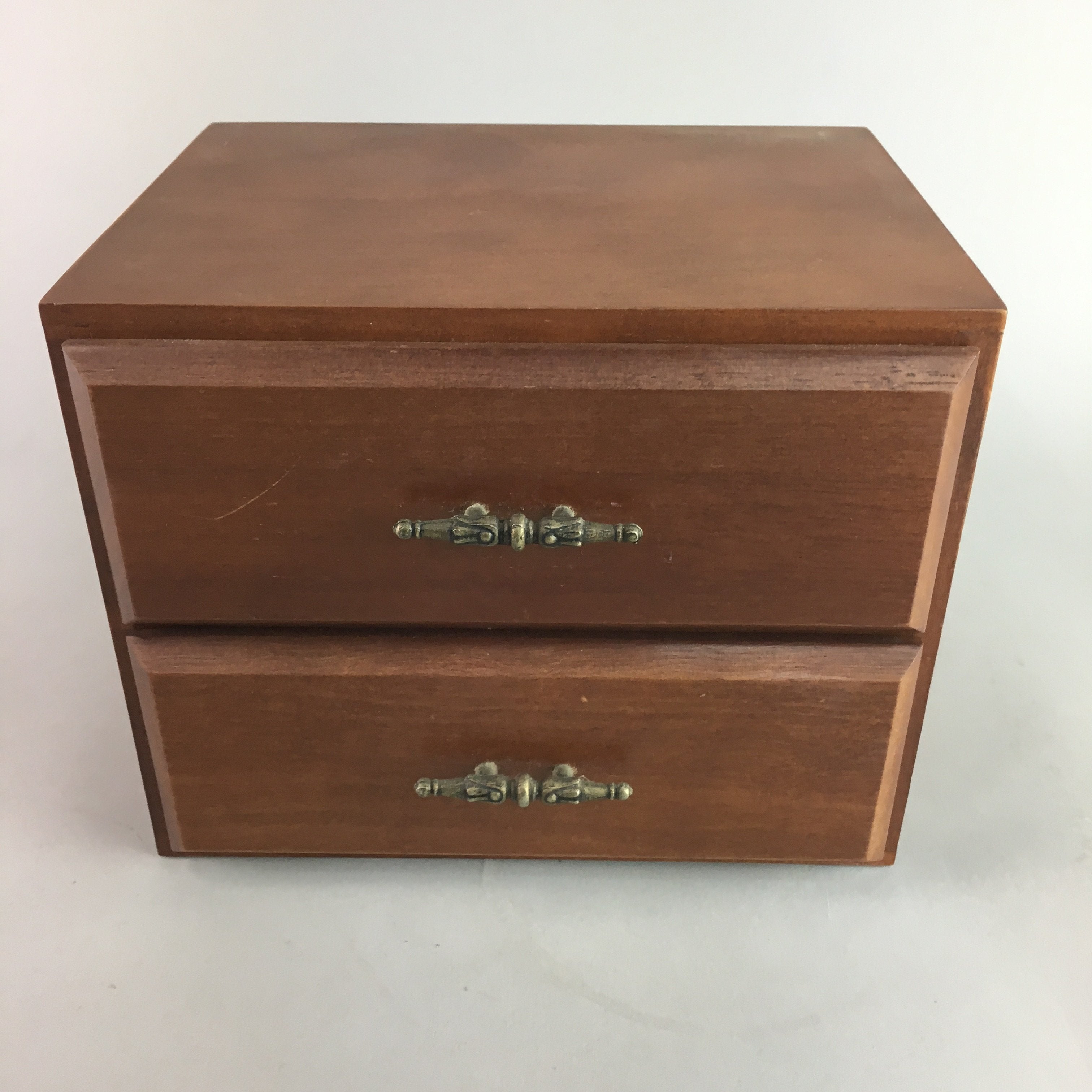 Japanese Wood Sewing Box Haribako Chest Tansu 2 Drawers