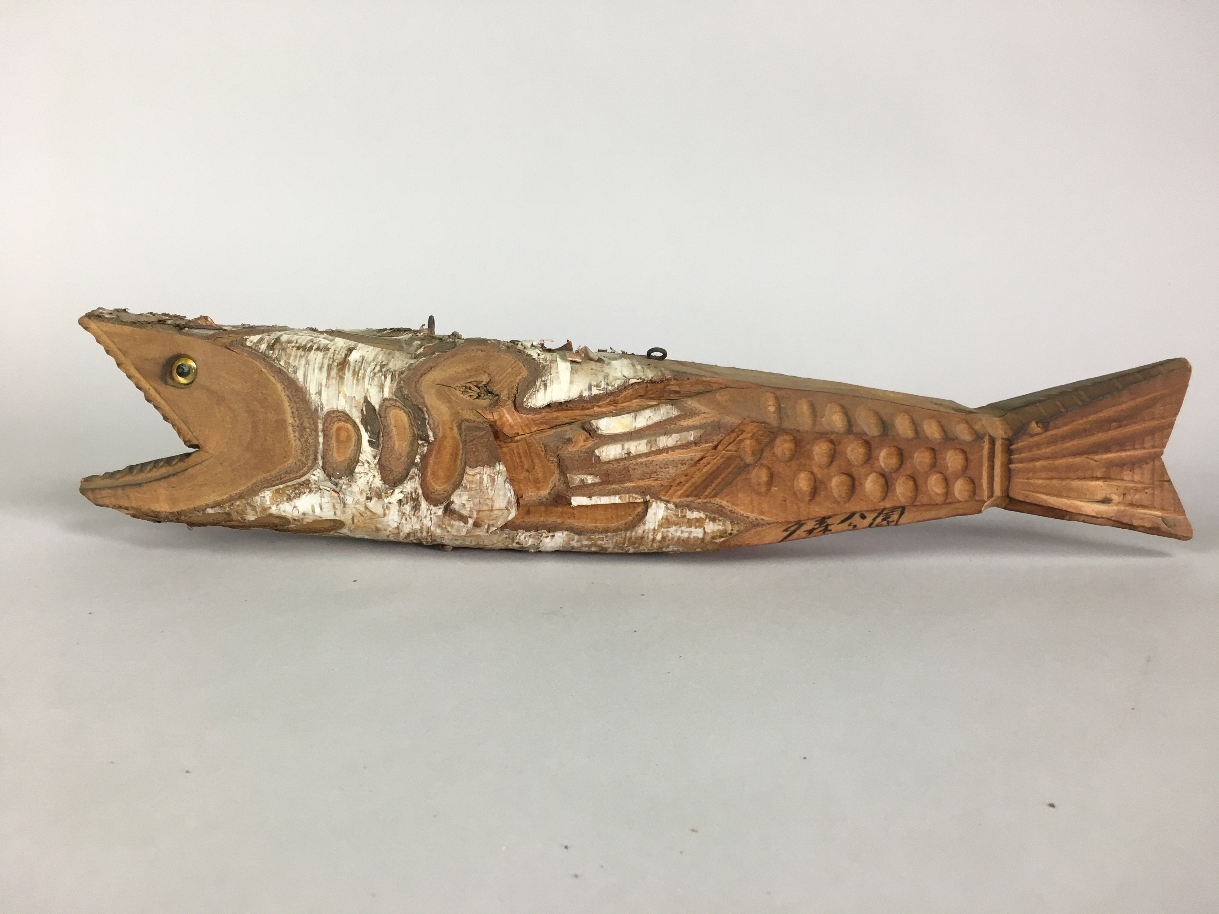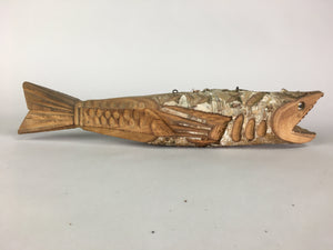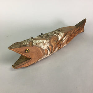 Japanese Wooden Statue Vtg Fish Wood Carving Hanging Decoration Brown BD624