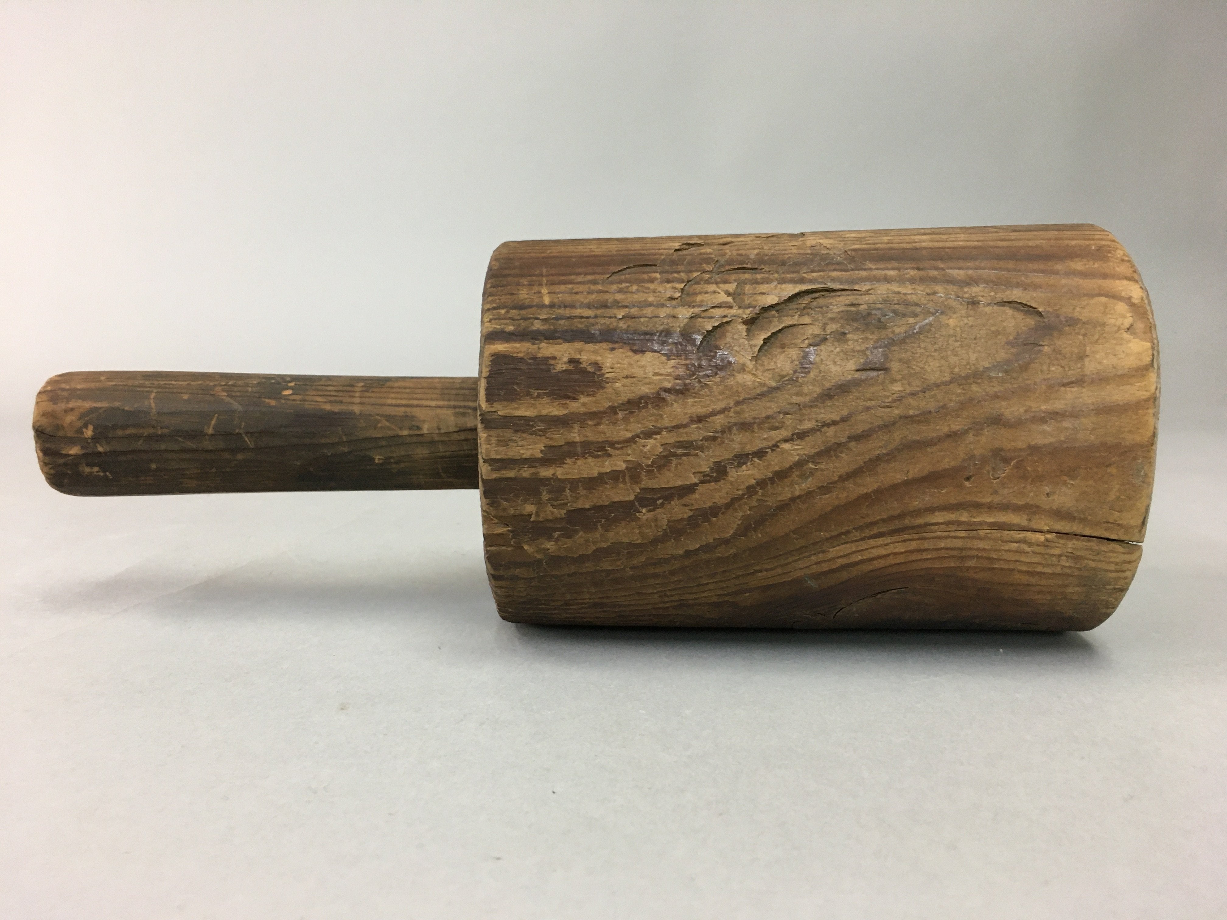 Japanese Wooden Club Yokoduchi Vtg Ironing Tool Fabric Straw Grain J910