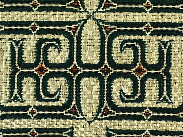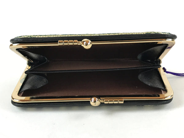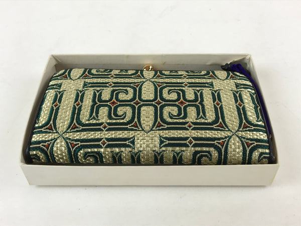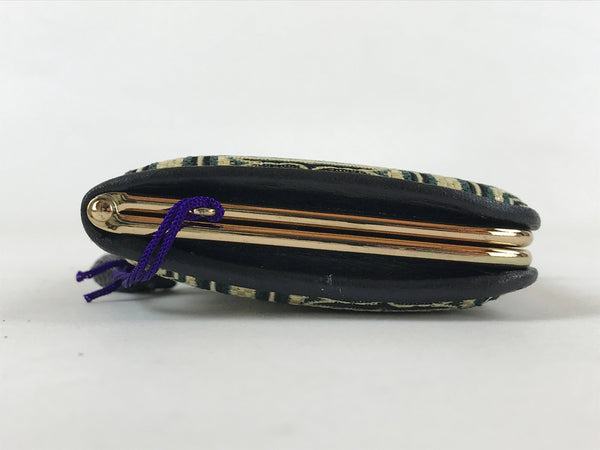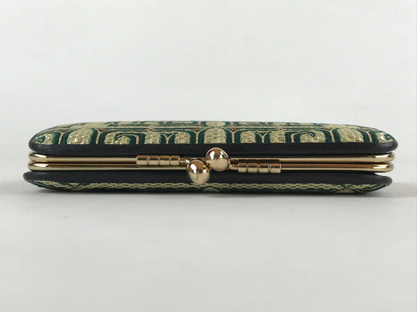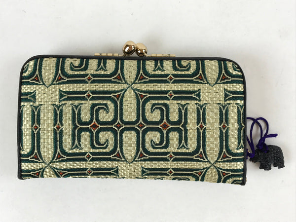 Japanese Woven Silk Wallet Vtg Ainu Pattern Gamaguchi Clasp Green Gold KB73
