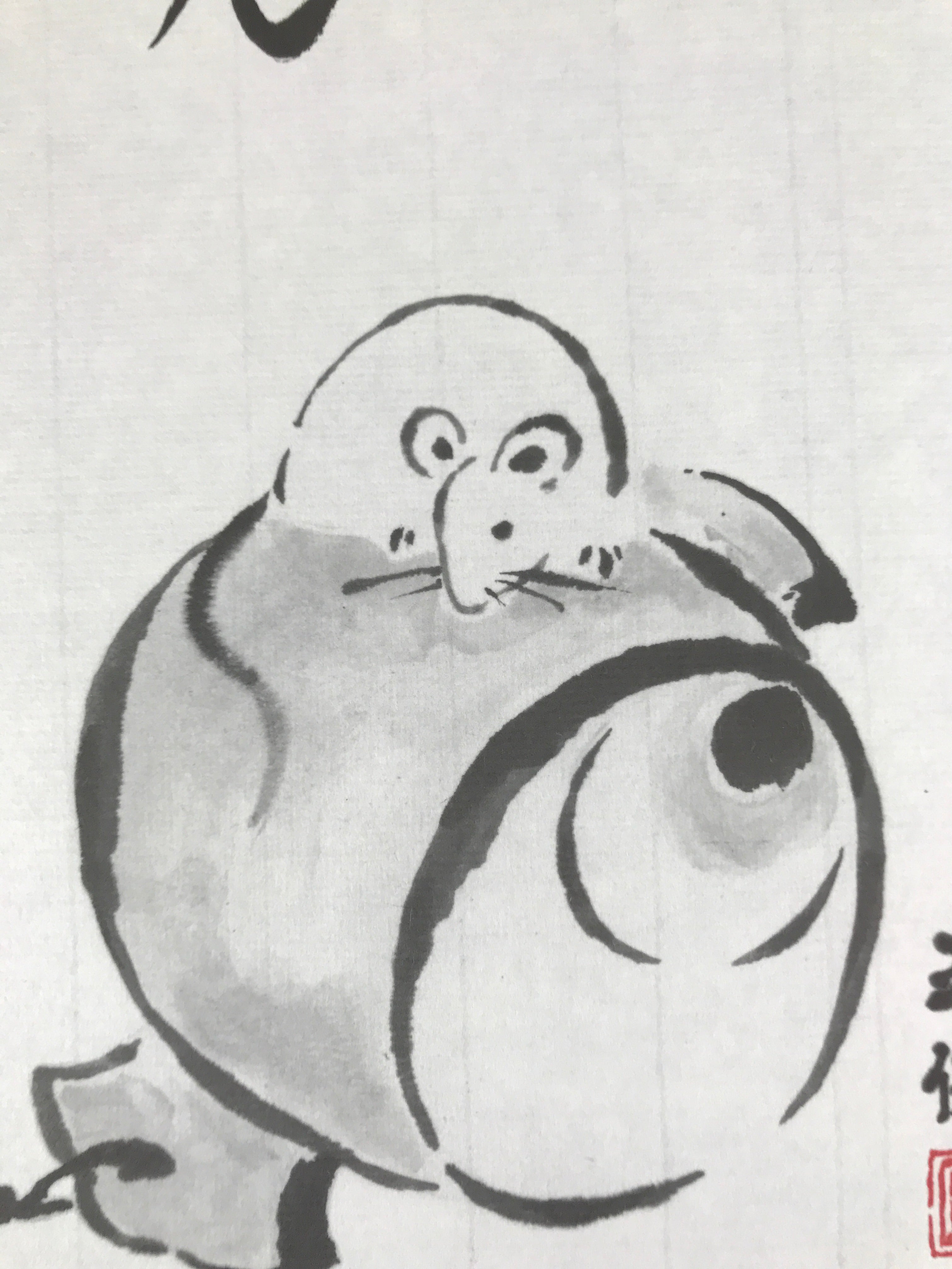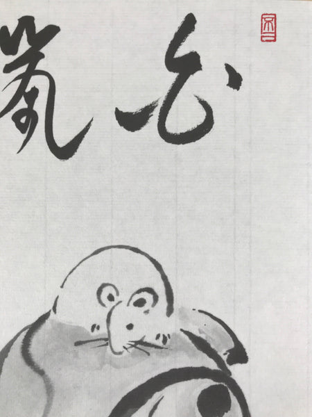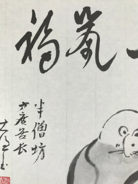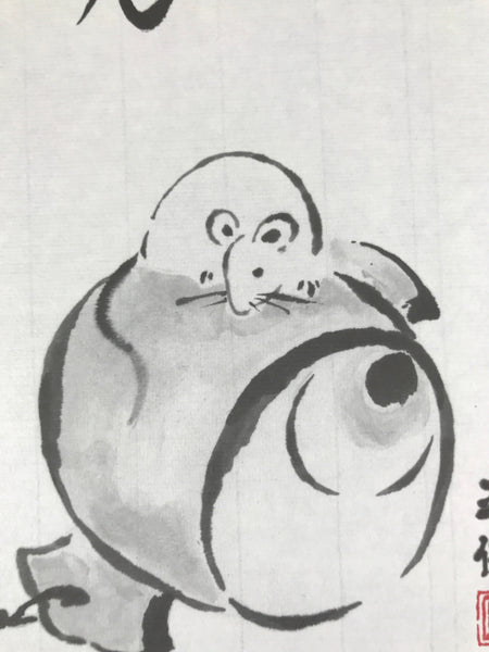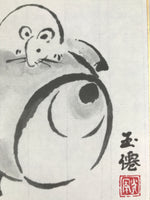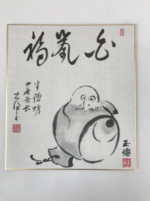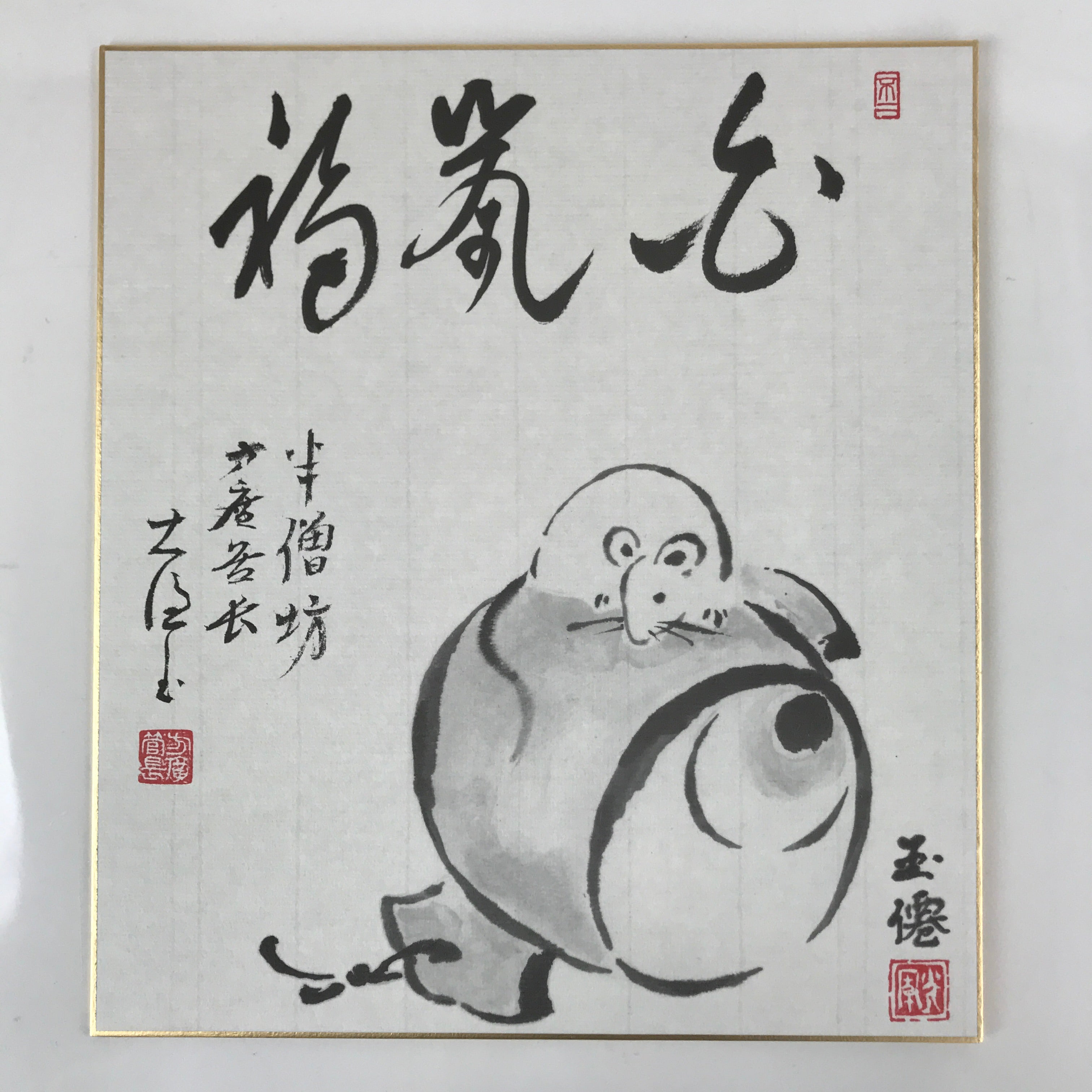Japanese Zodiac Shikishi Art Board Painting Vtg Mouse Rat Daikokuten Kanji A663