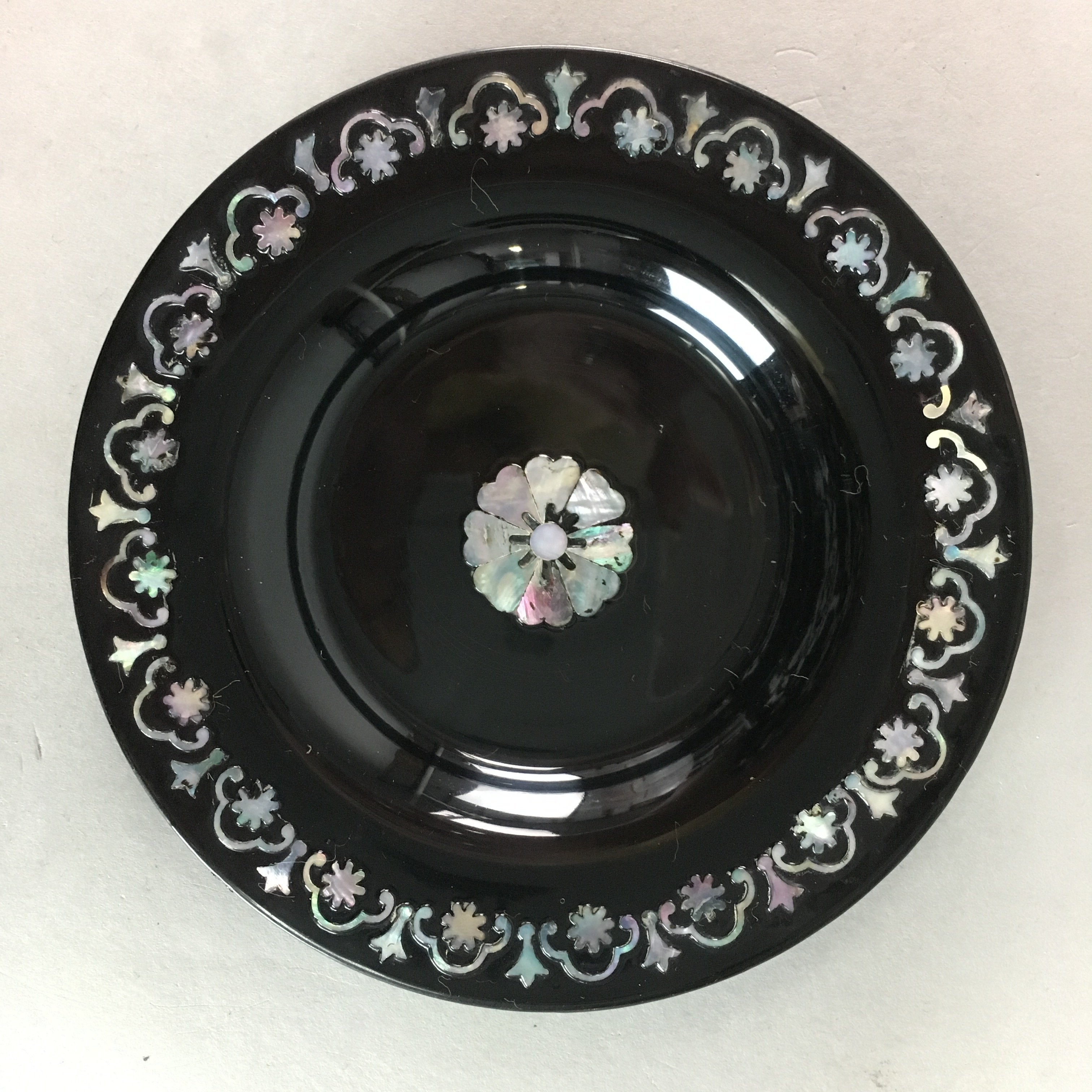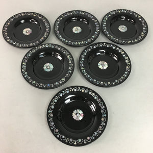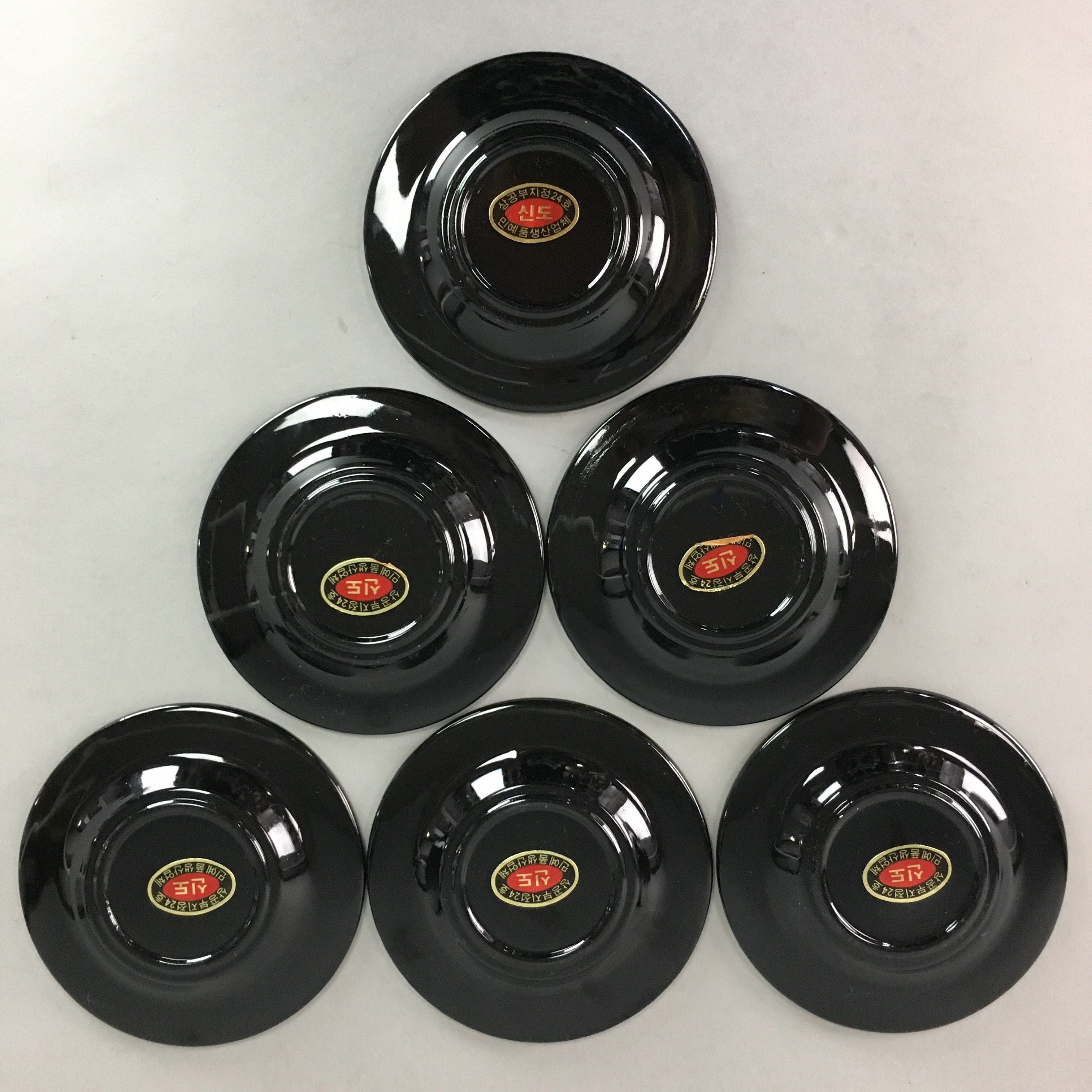 Korean Saucer Set 6pc Set Lacquerware Replica Vtg Chataku Shell Inlay PT890
