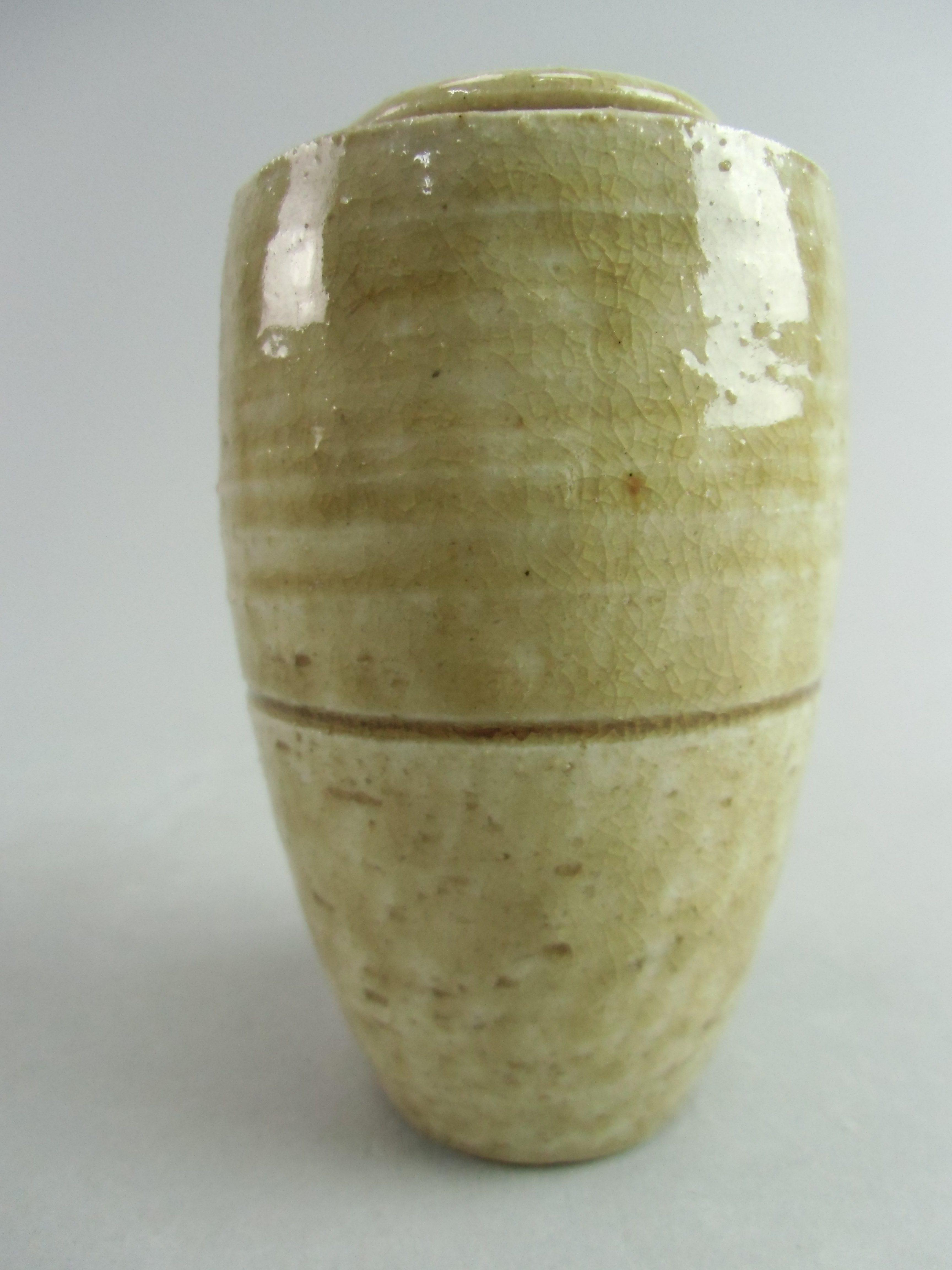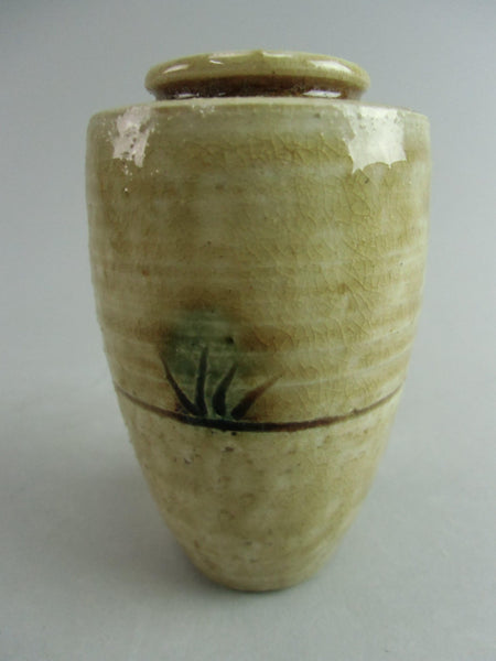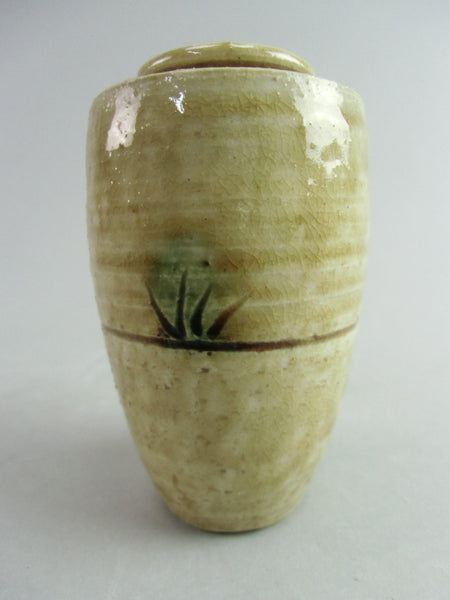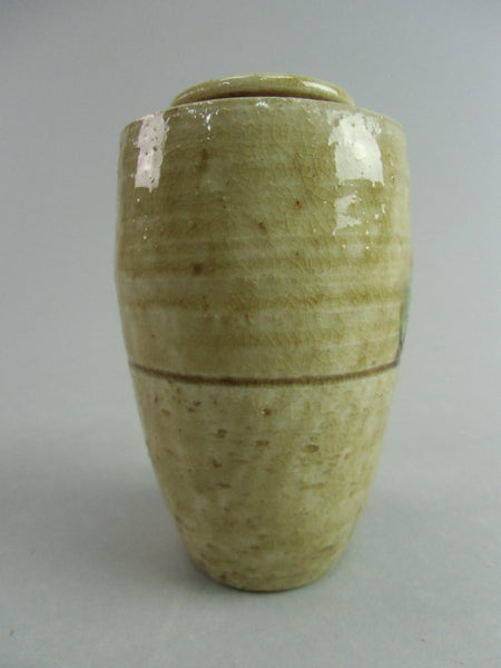 Japanese Ki Seto ware Mini Flower Vase Vtg Pottery Beige Green Ikebana MFV53