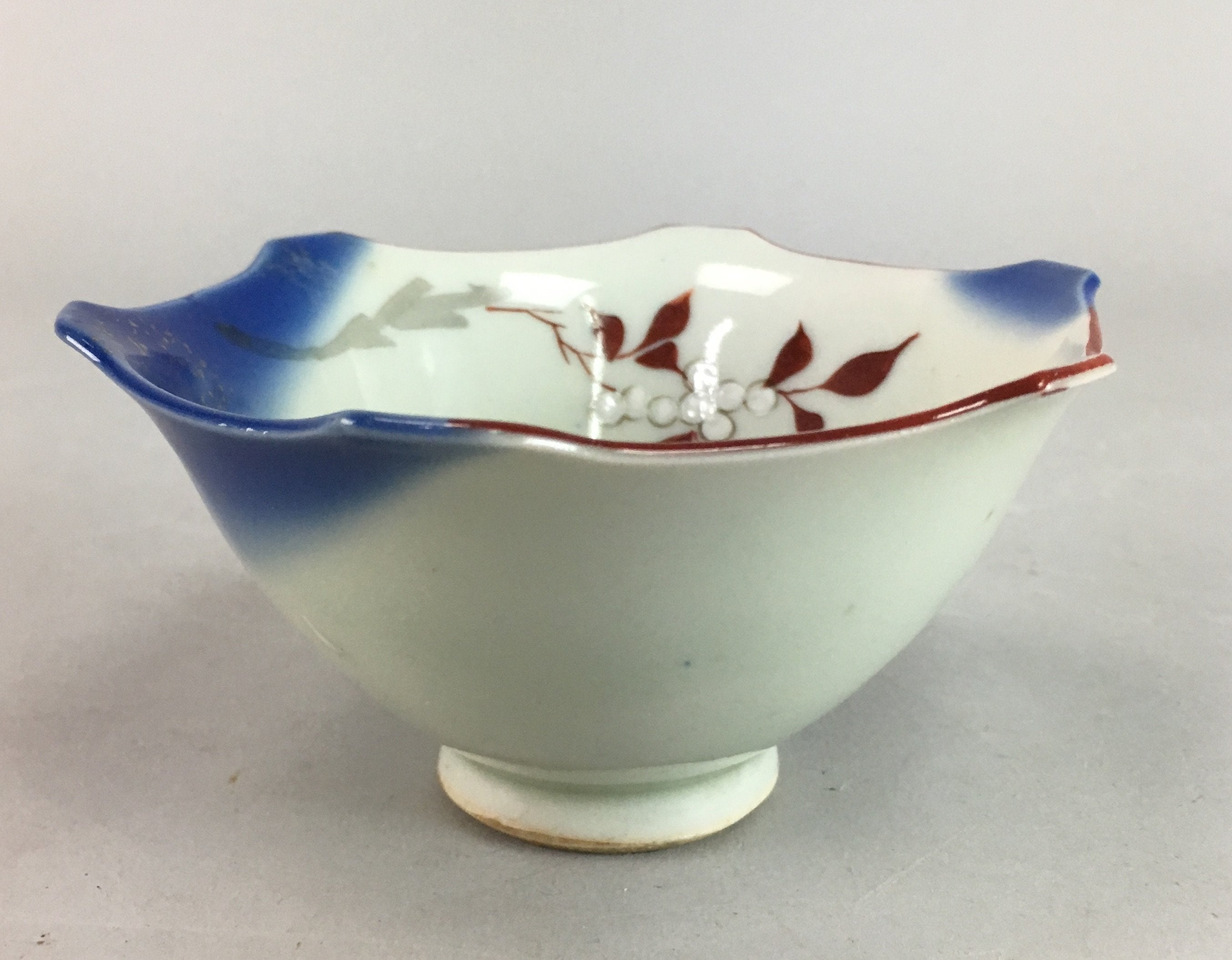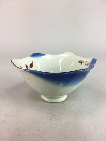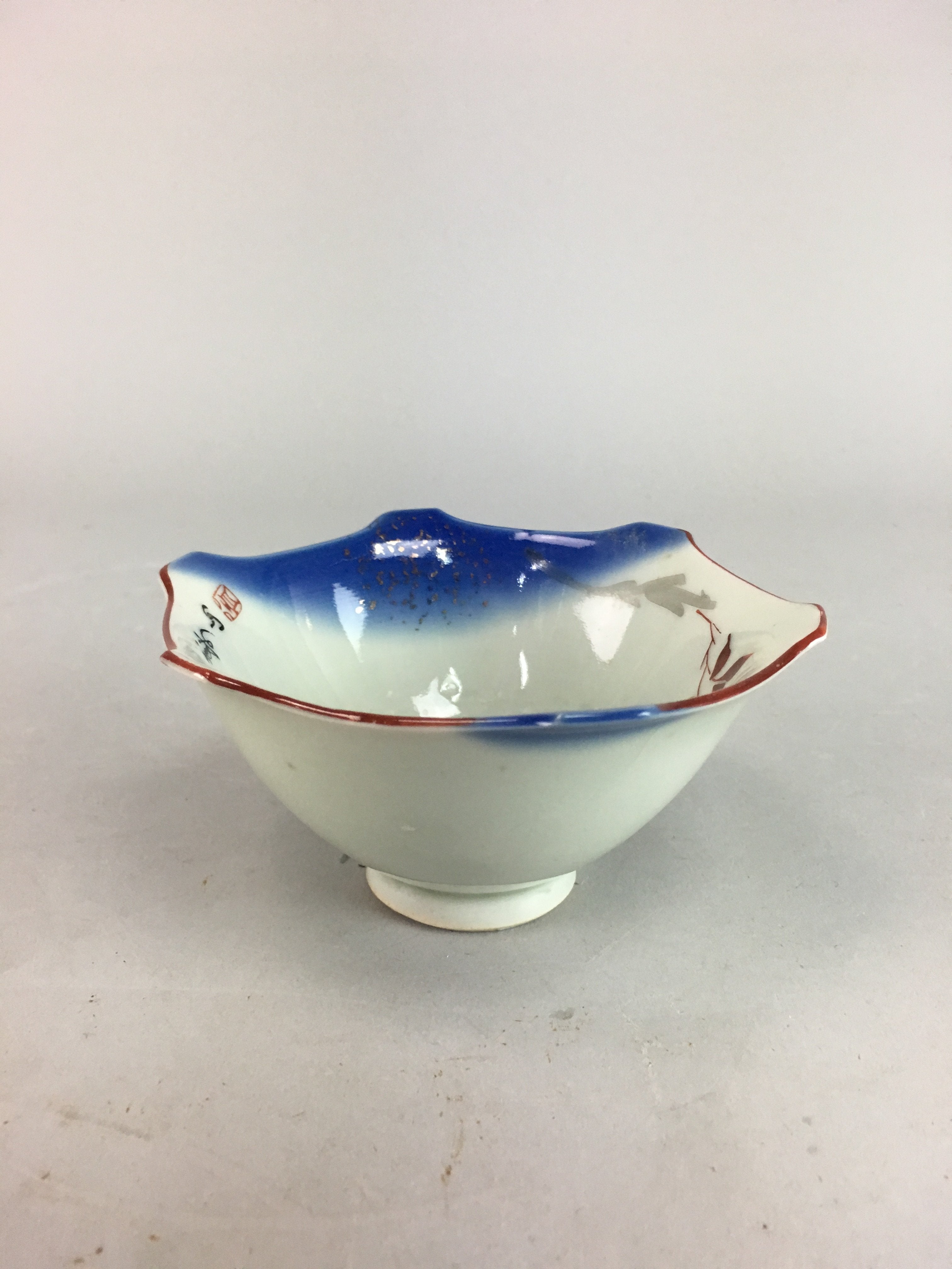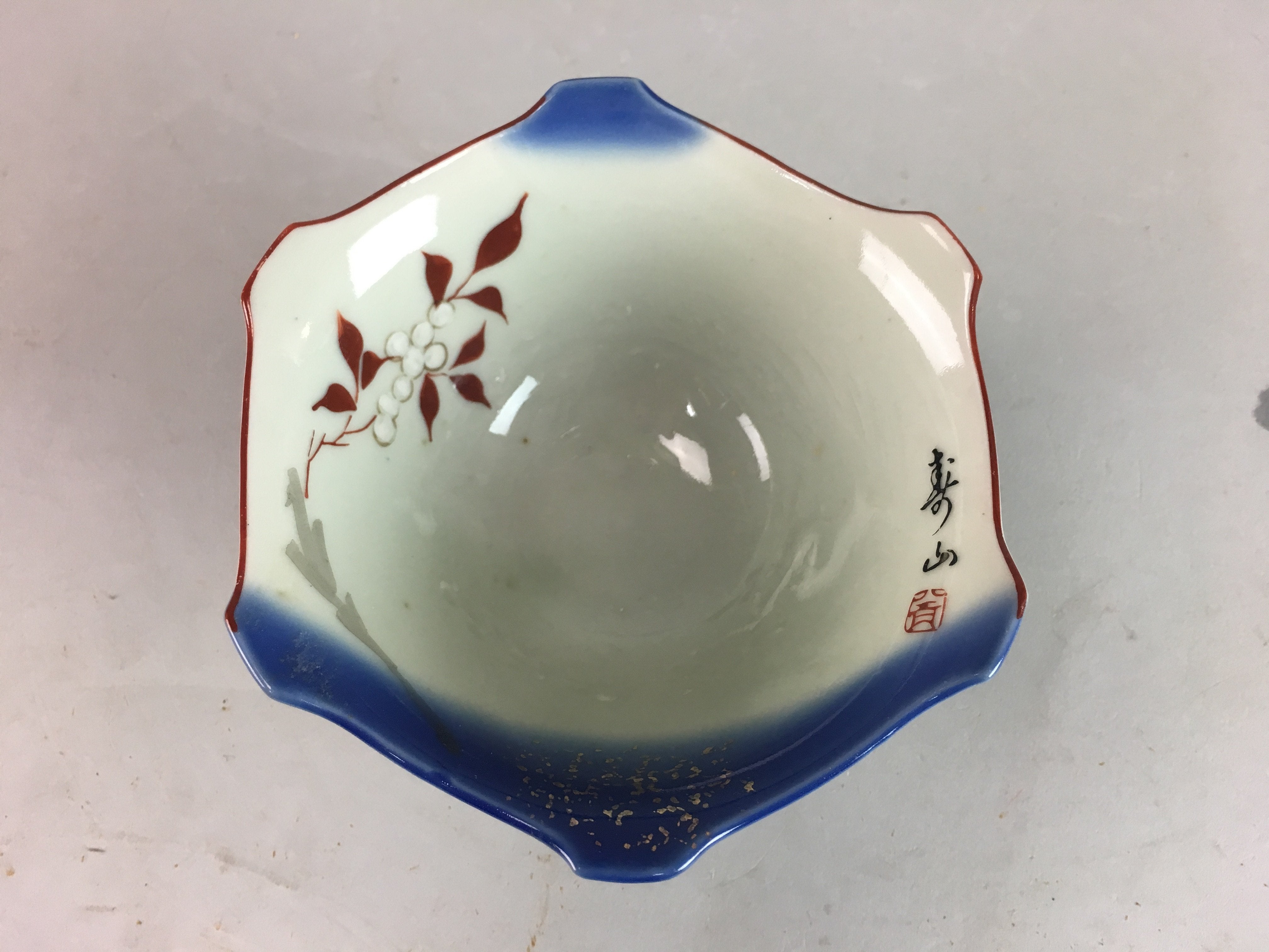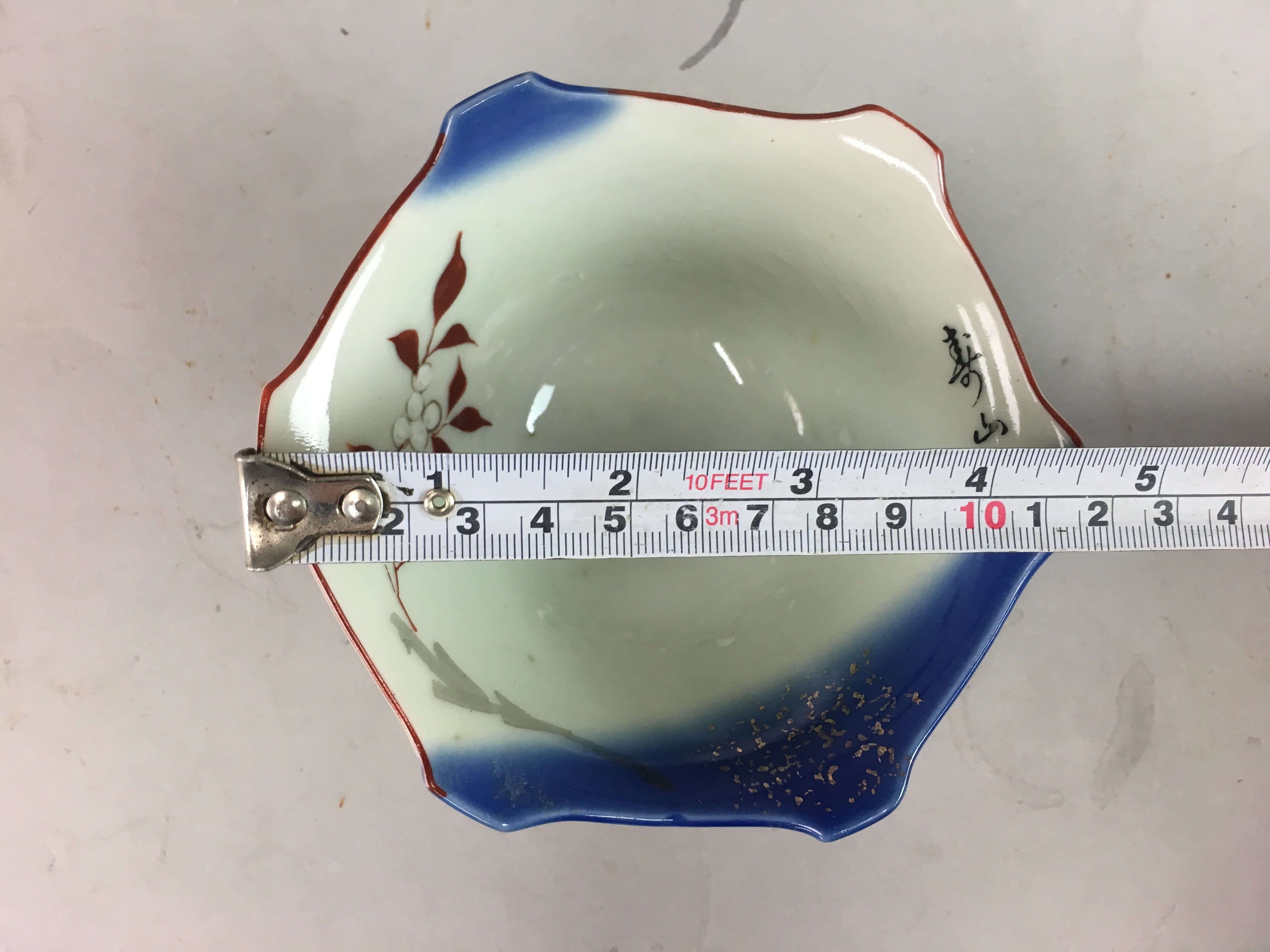 Japanese Porcelain 6 Sided Bowl Vtg Kobachi Blue Green Leaf Snack Kanji PT185
