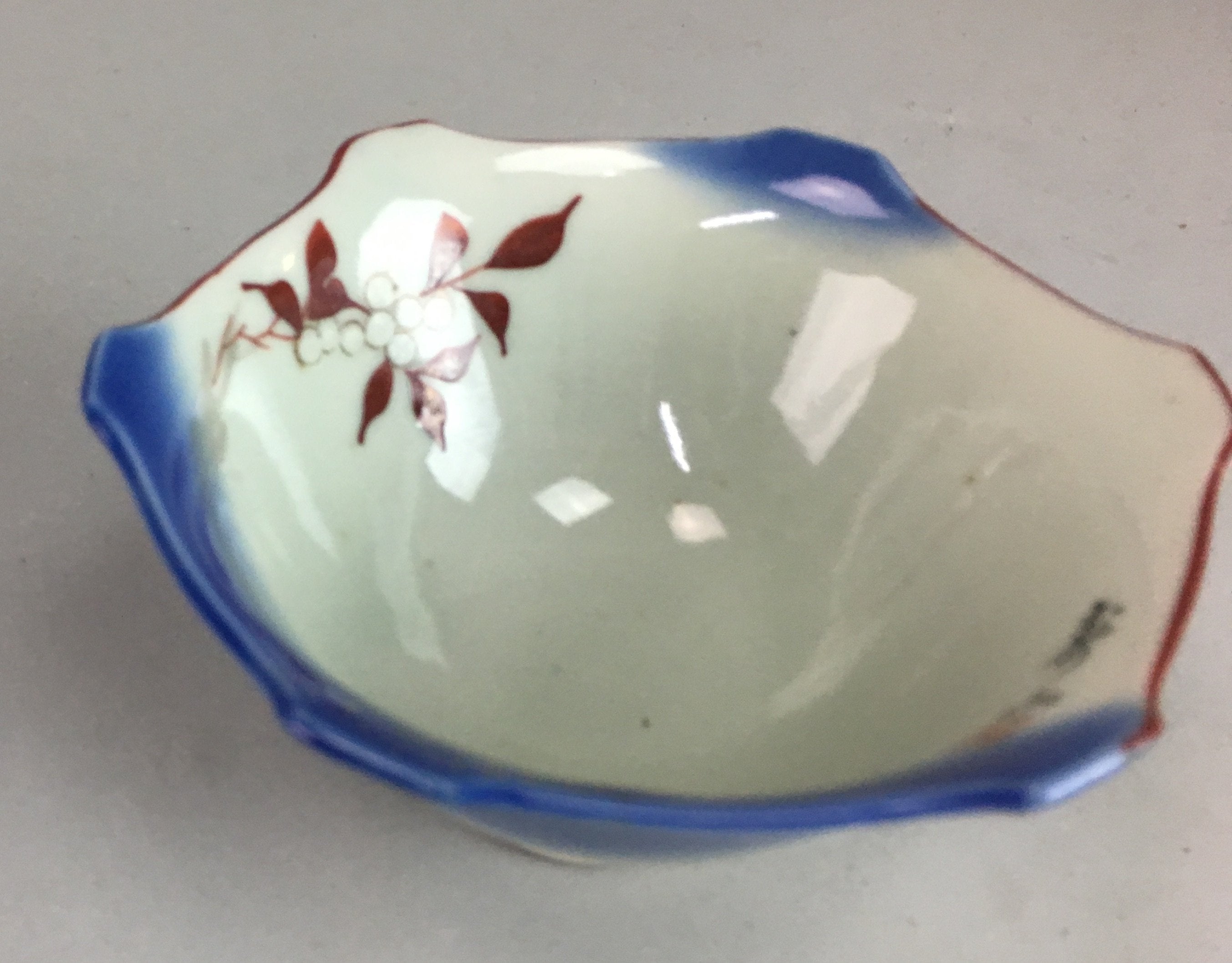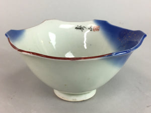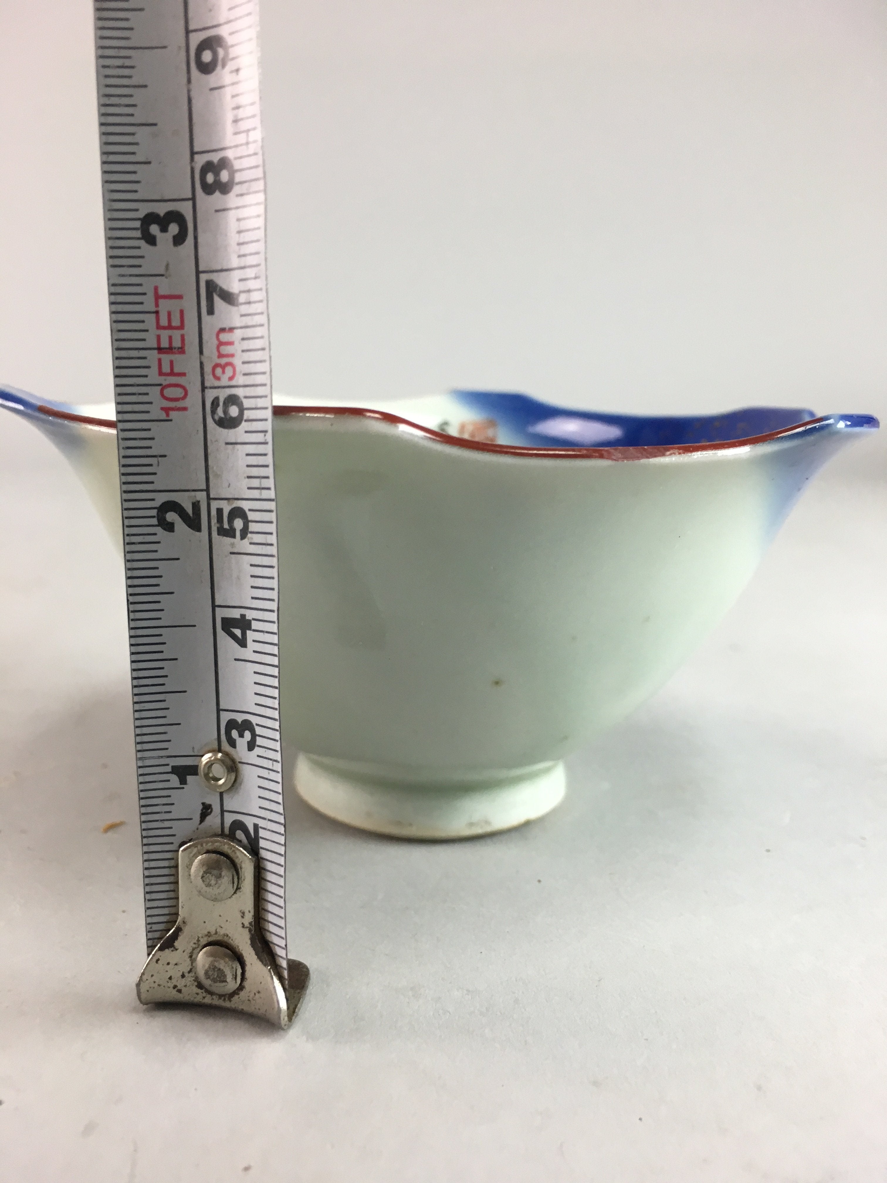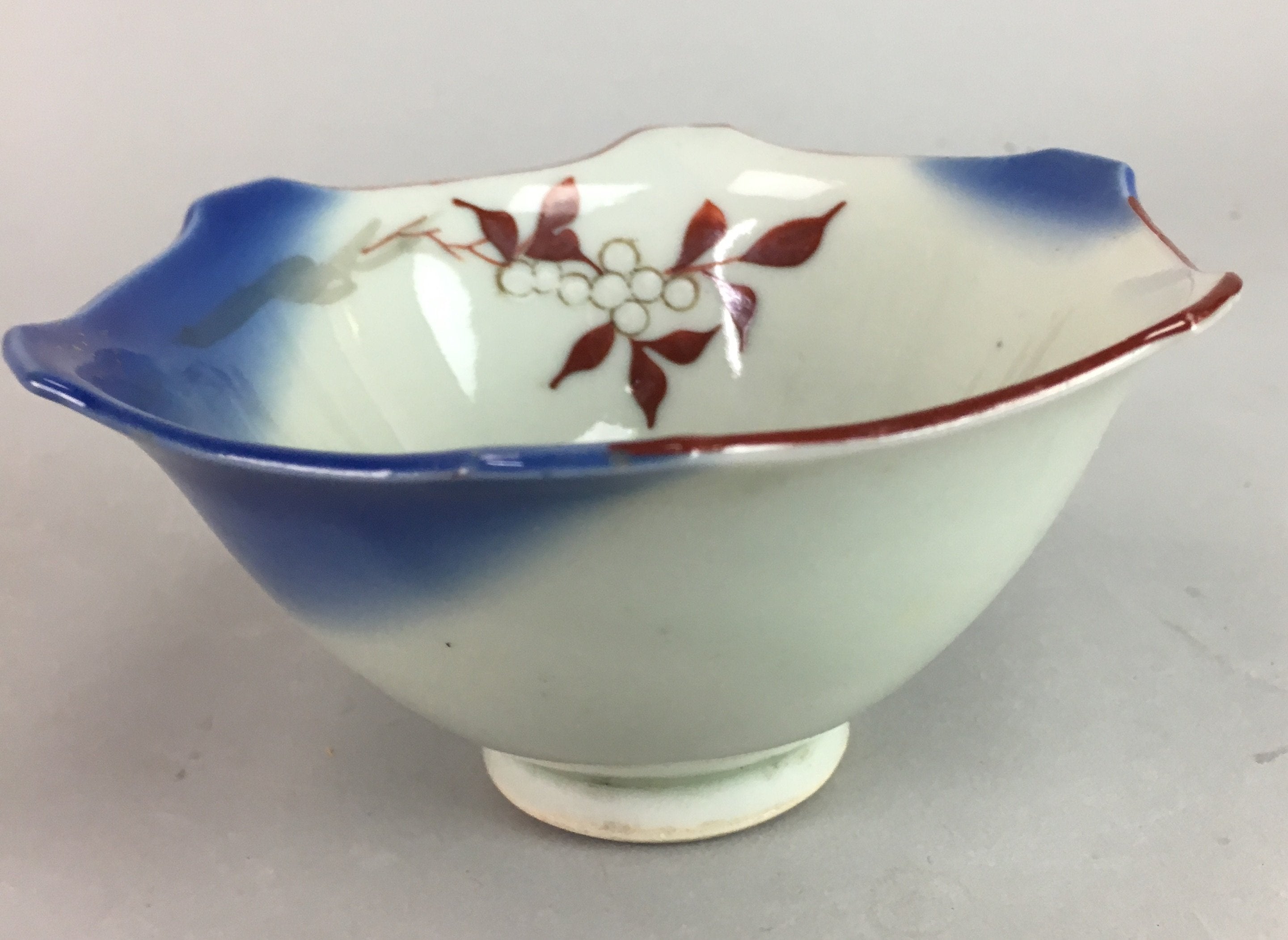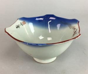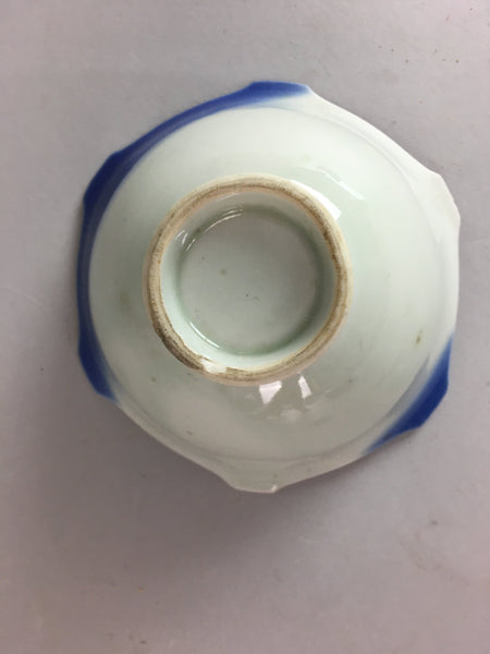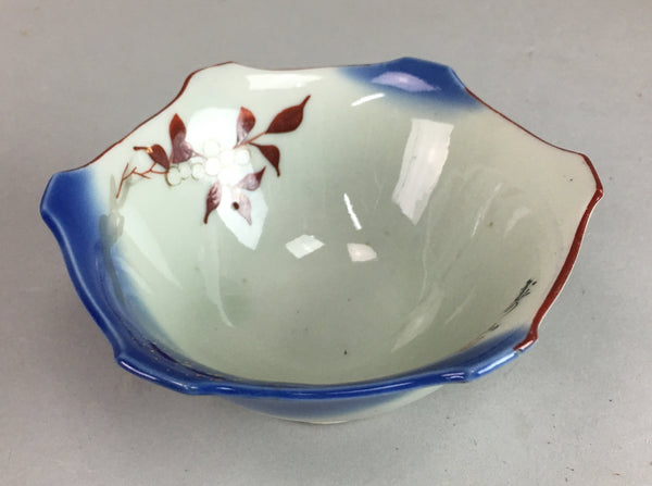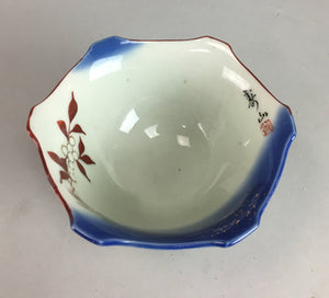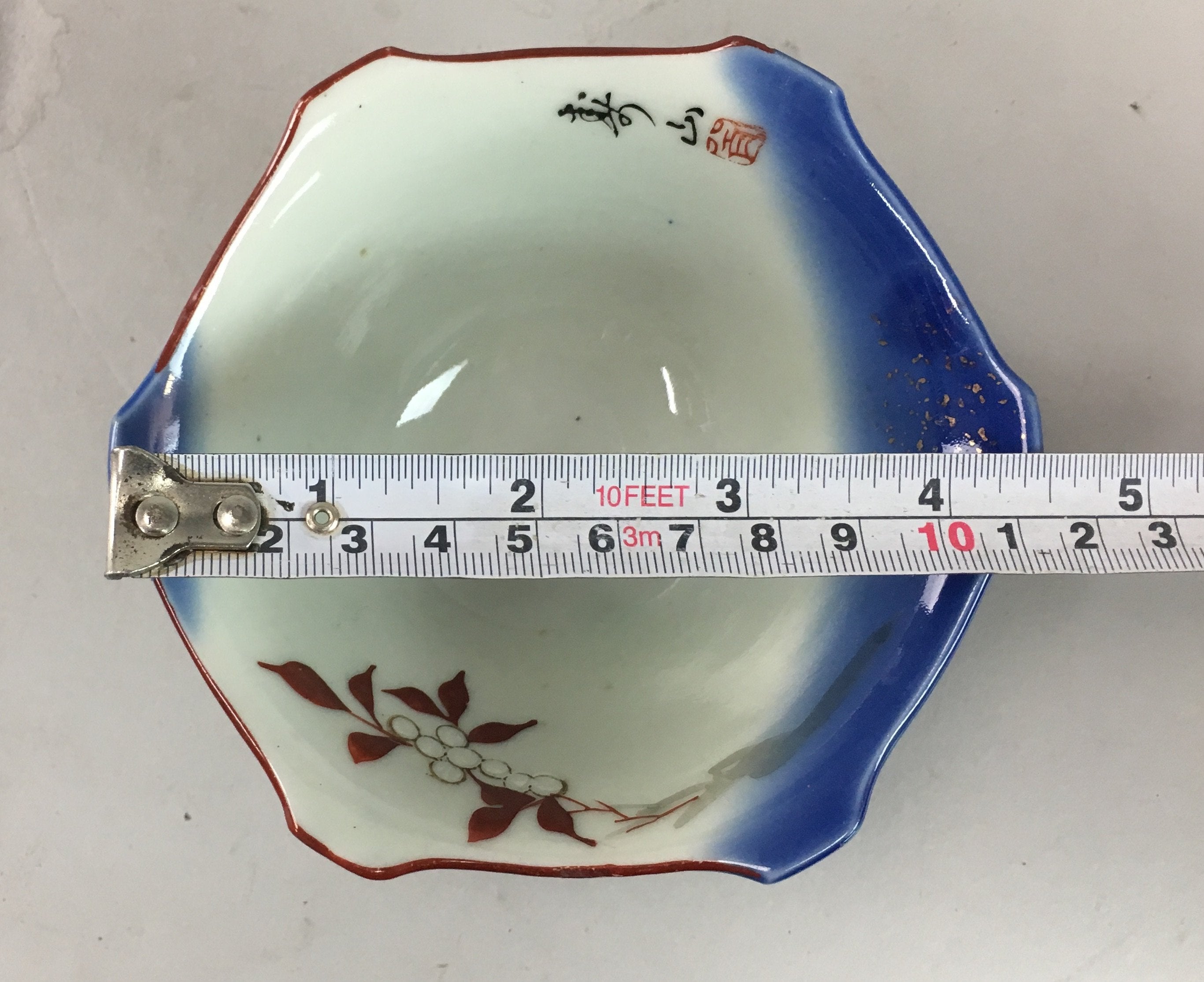Japanese Small Porcelain 6 Sided Bowl Vtg Kobachi Blue Green Leaf Kanji PT192