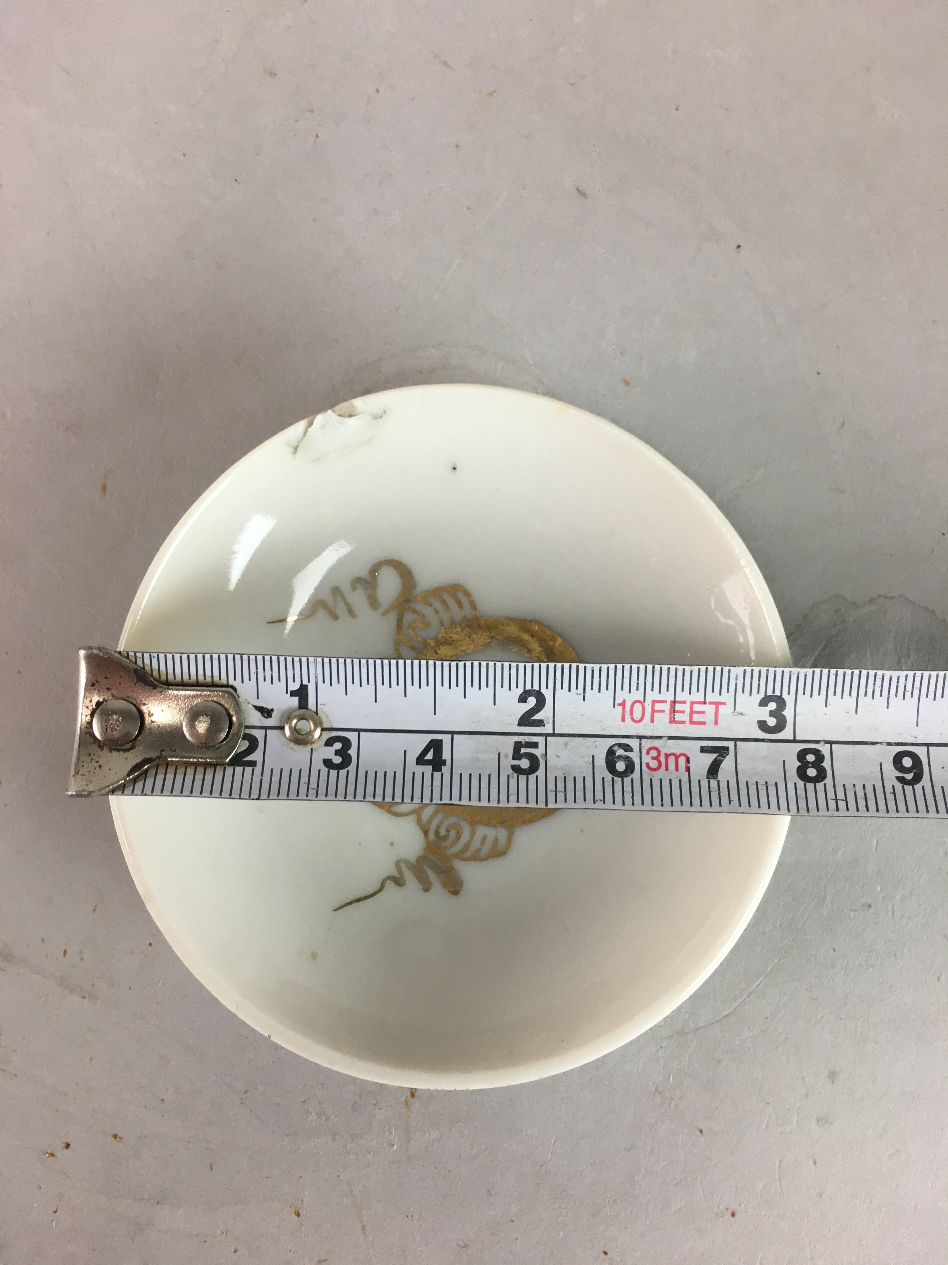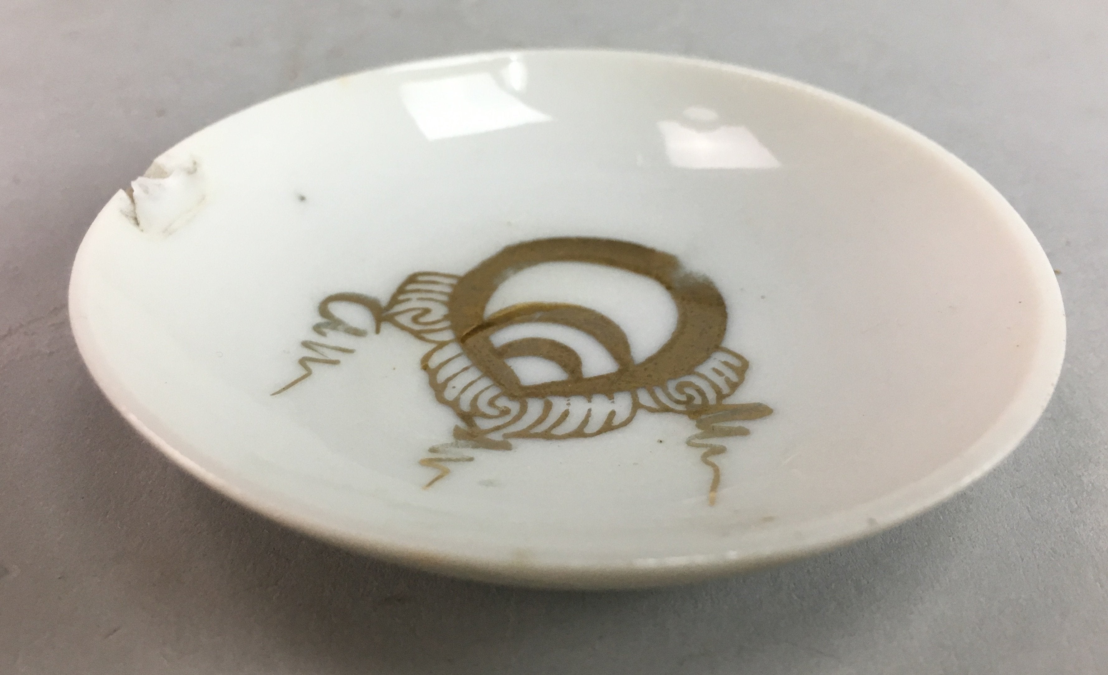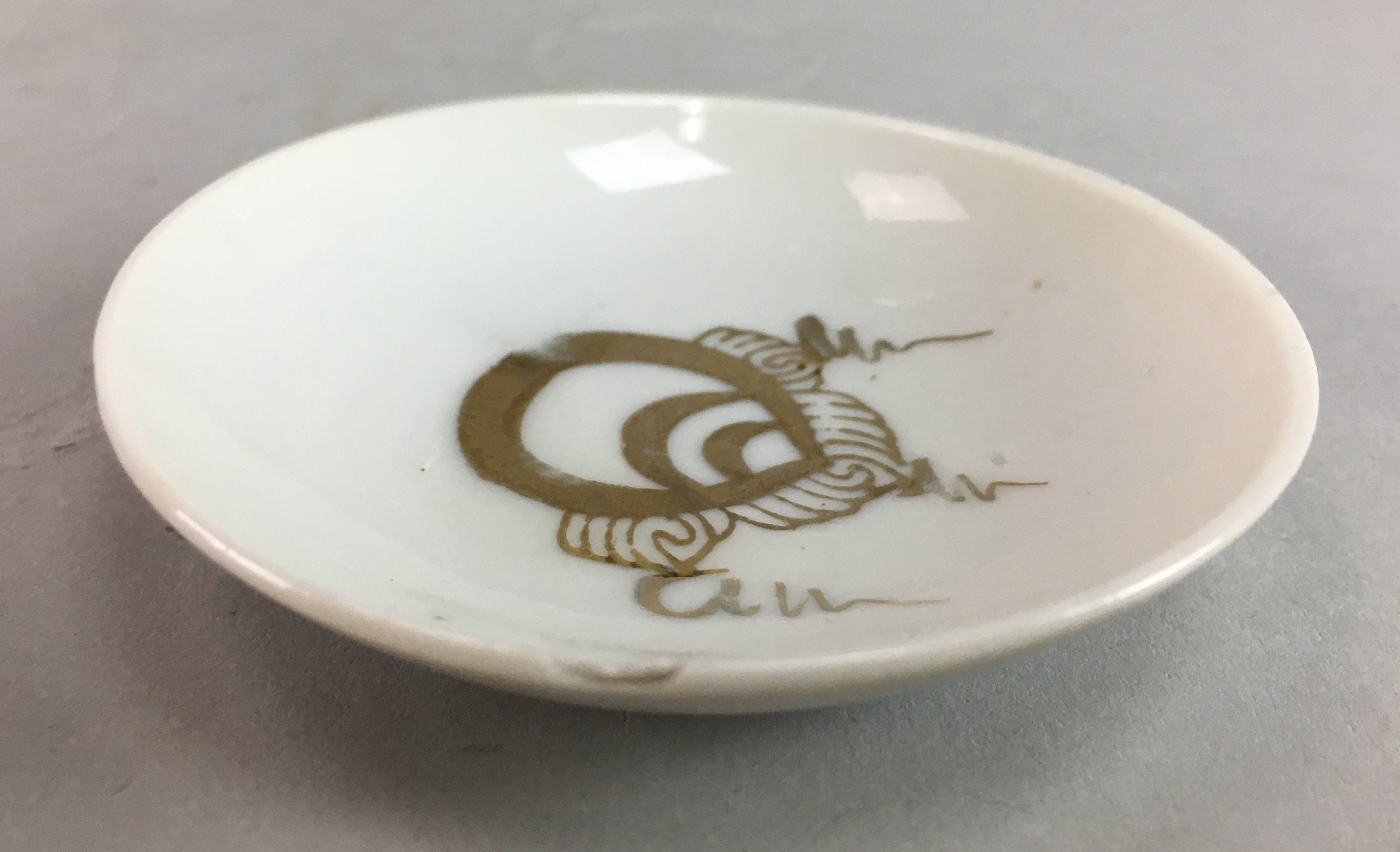 Japanese Porcelain Soy Sauce Dipping Dish Plate Vtg Kozara Gold Crest Chip PT210