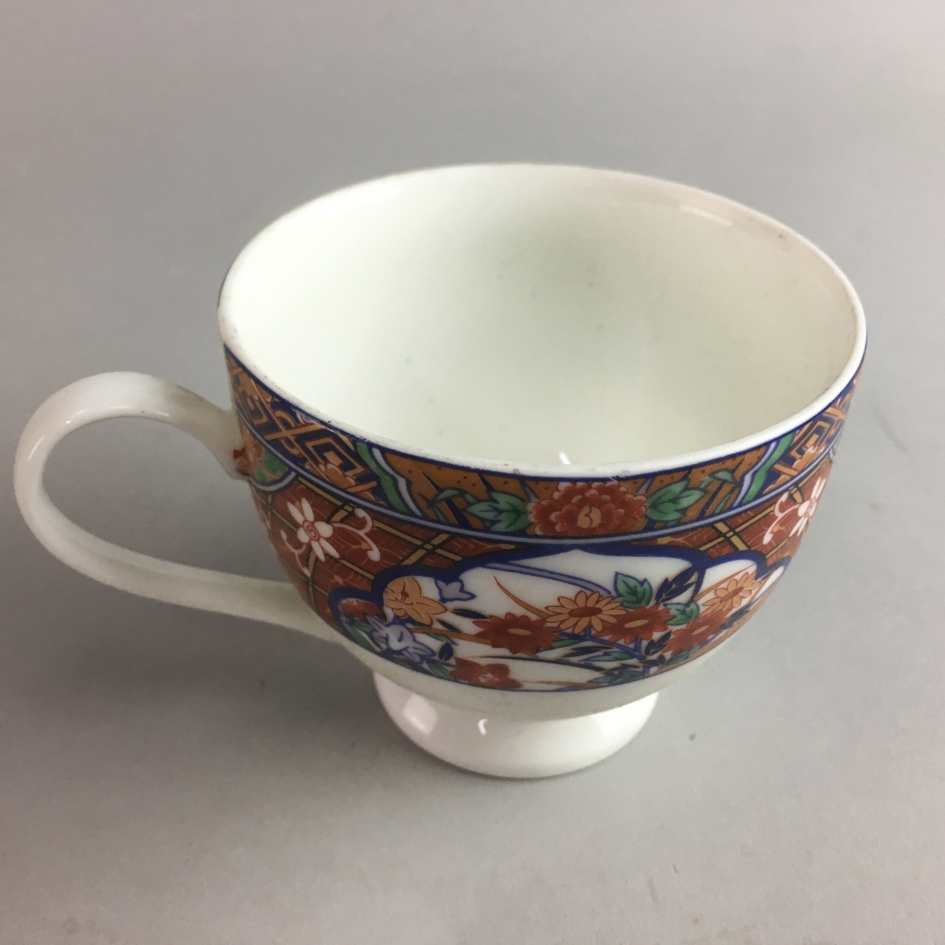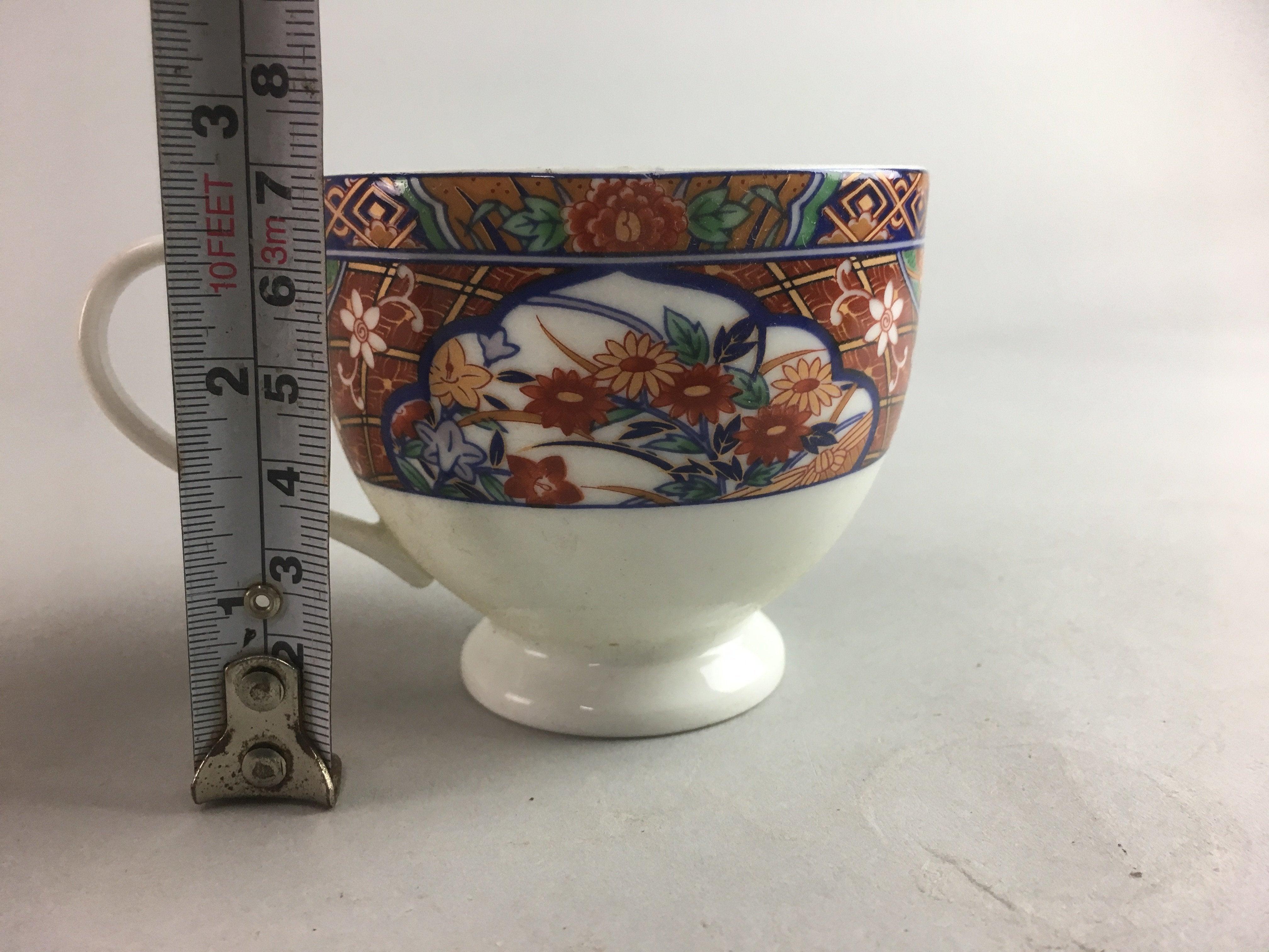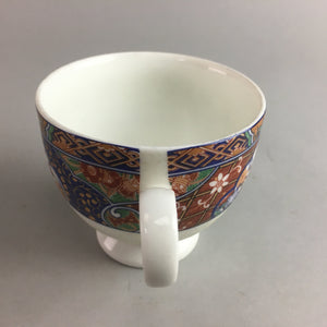 Details: This is a vintage Japanese porcelain teacup or mug. It is made of porcelain and has a handle with hand-painted multi-color flower designs. Buy this beautiful mug today to add to your fashionable tea break.