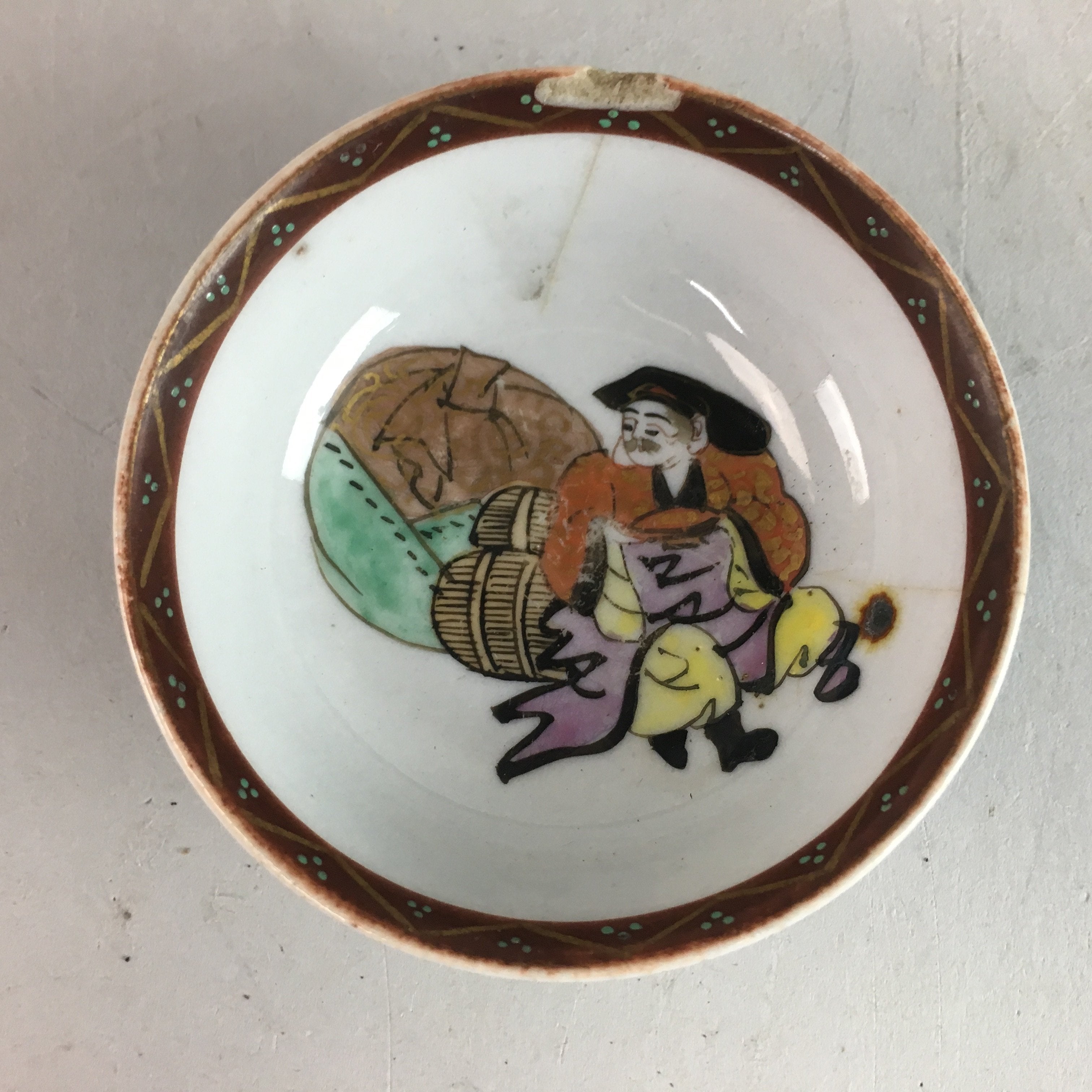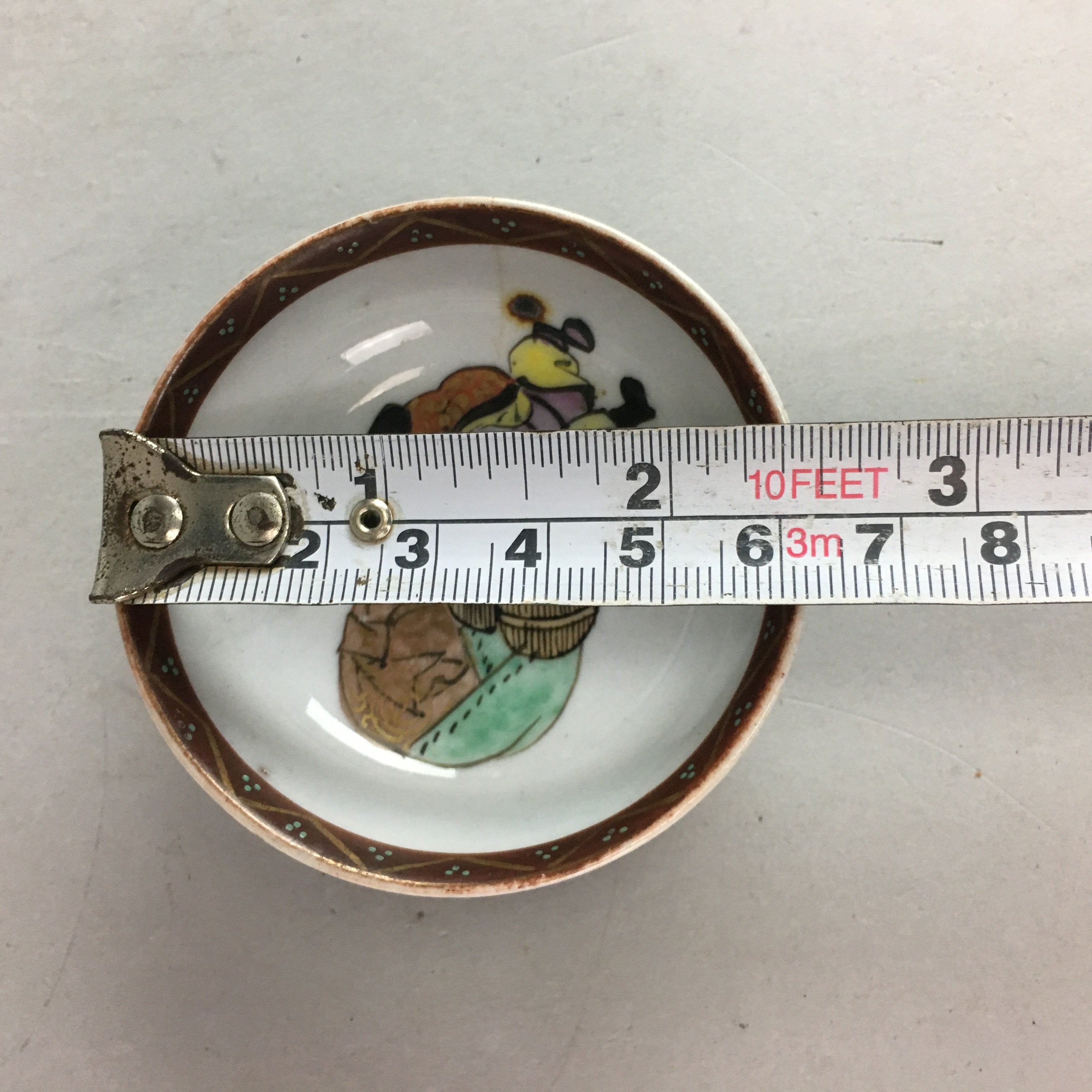 Japanese Porcelain Sake Cup Vtg Kutani ware Guinomi Sakazuki Kimono Man GU398