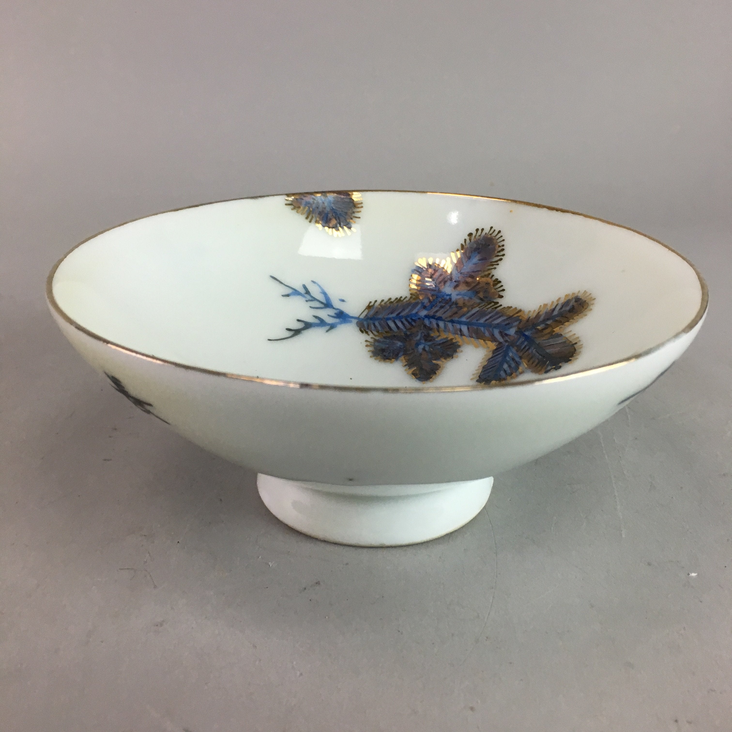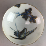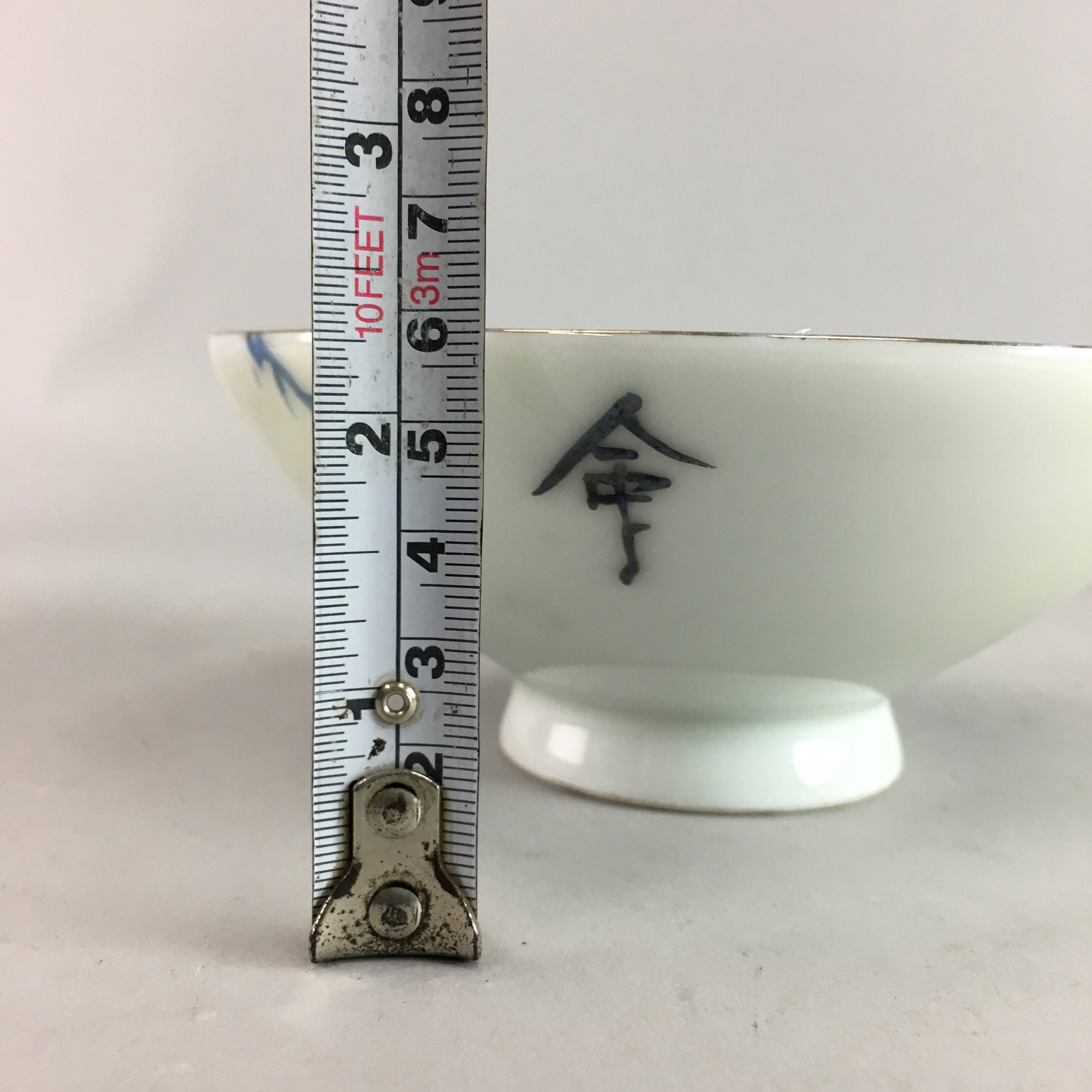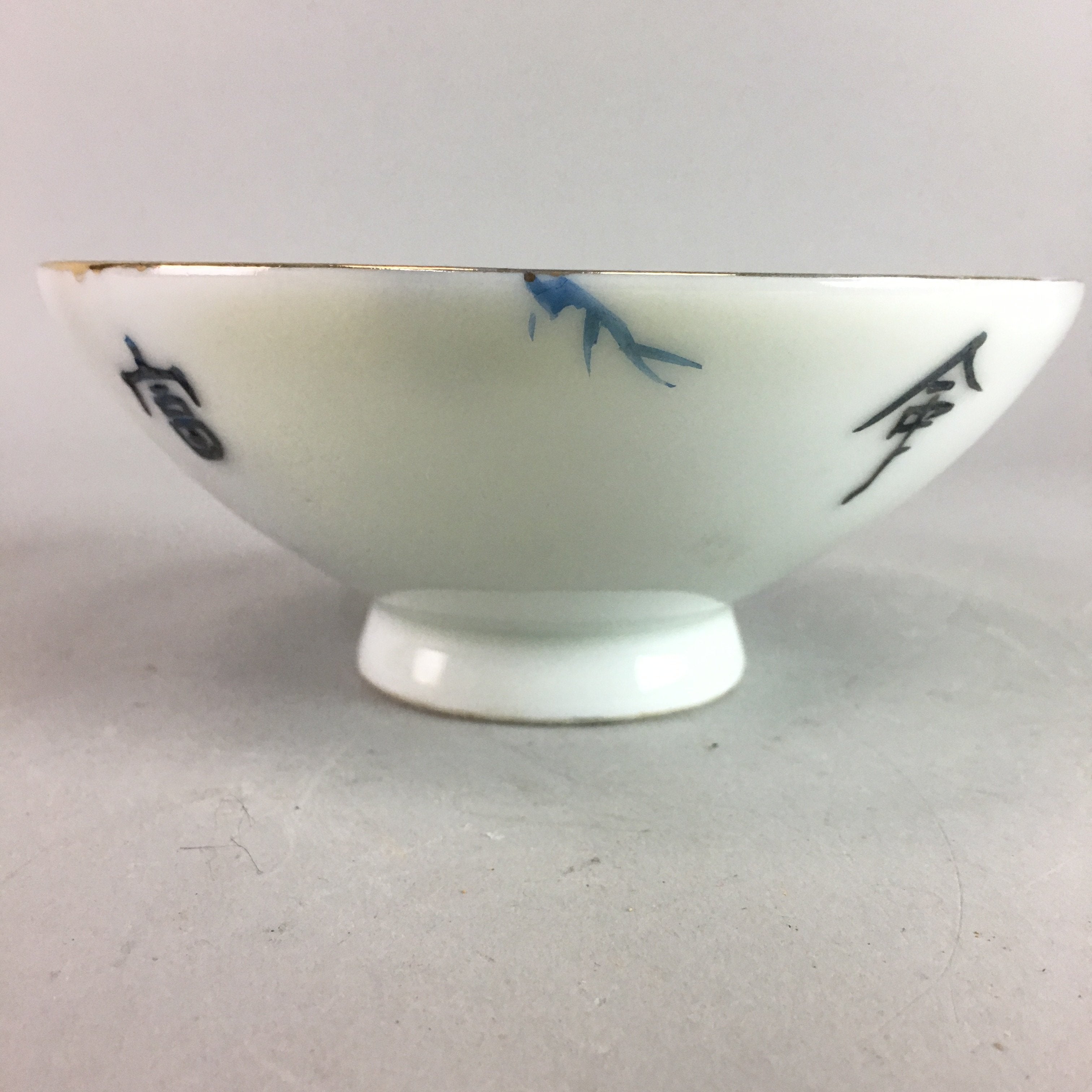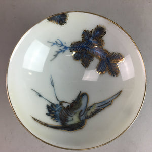 Japanese Sometsuke Porcelain Bowl Vtg Owan Gold Crane Pine tree Kanji PT305