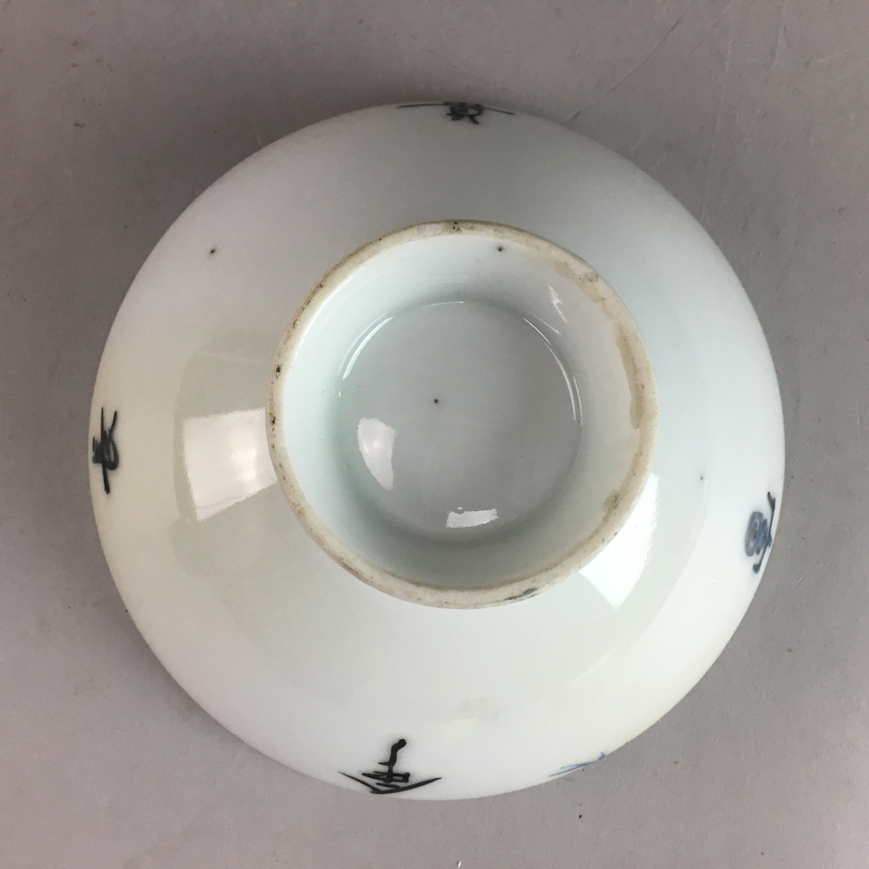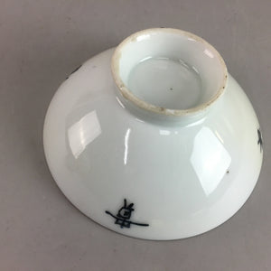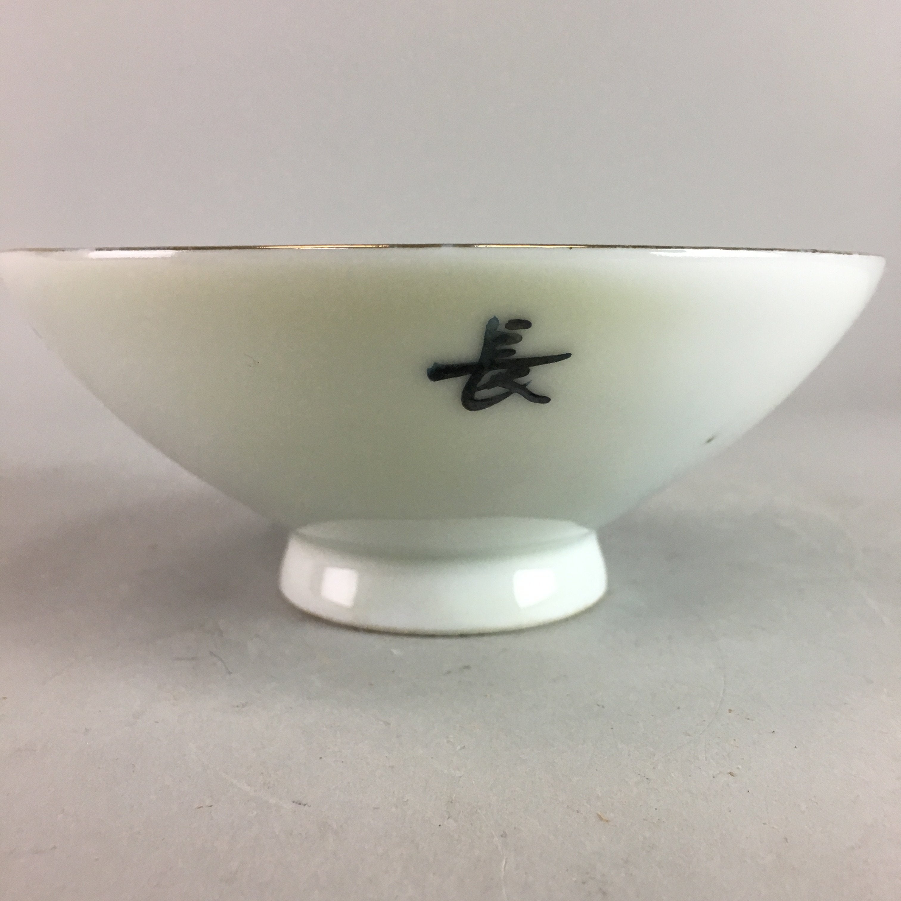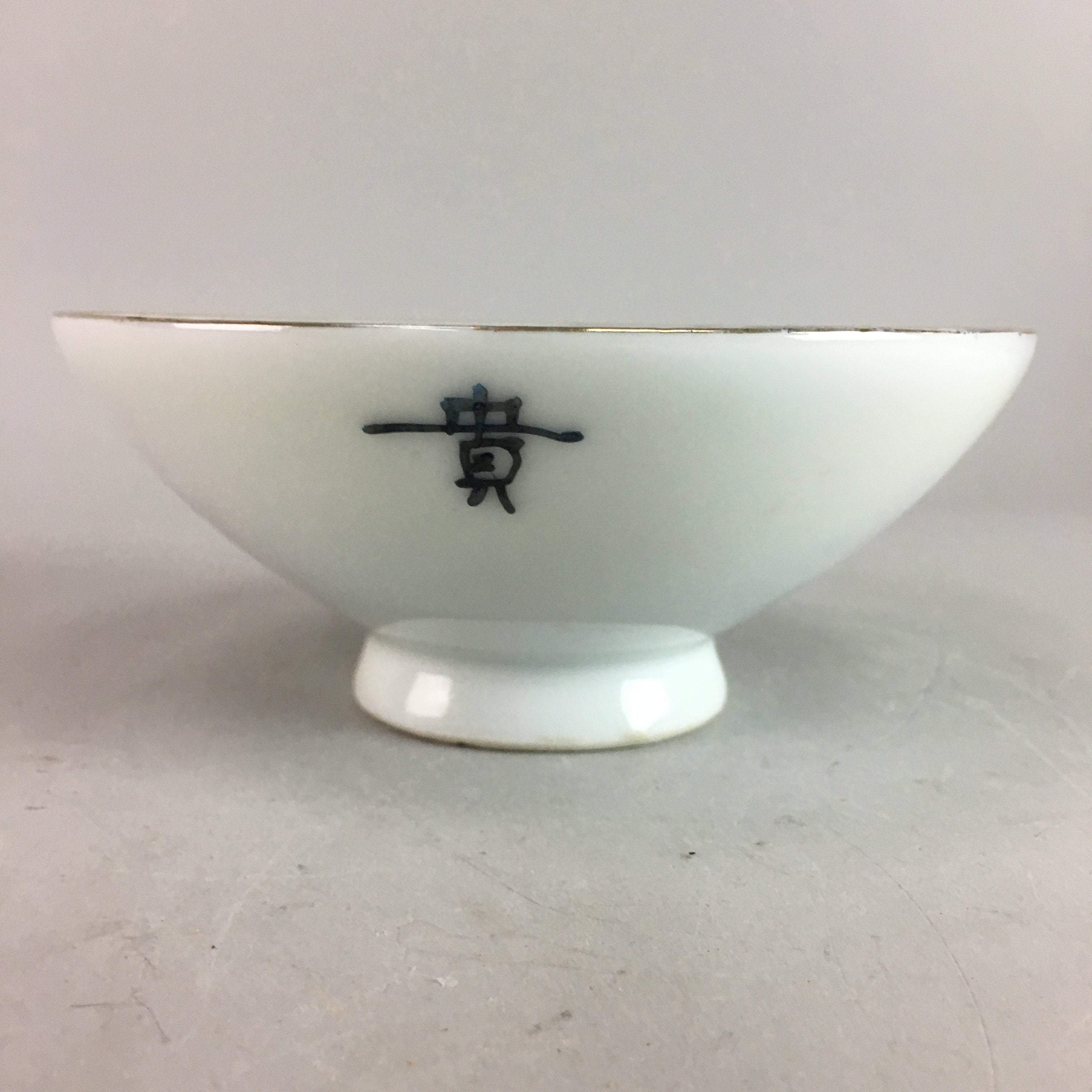 Japanese Sometsuke Porcelain Bowl Vtg Owan Gold Crane Pine tree Kanji PT305